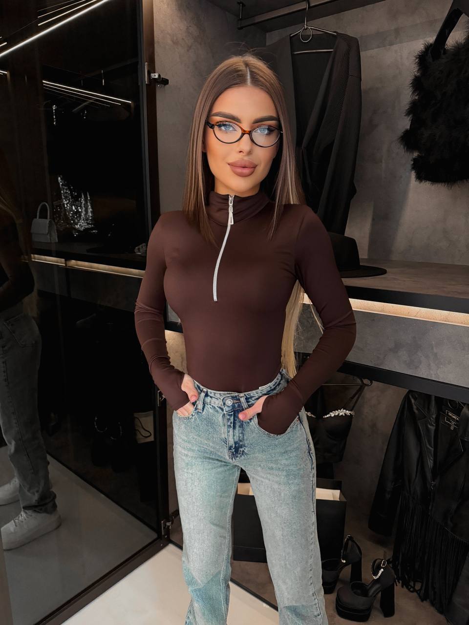 Жіноче Базове Чорне Боді з Довгими Рукавами та Розрізом під Палець (Копировать) (Копировать)