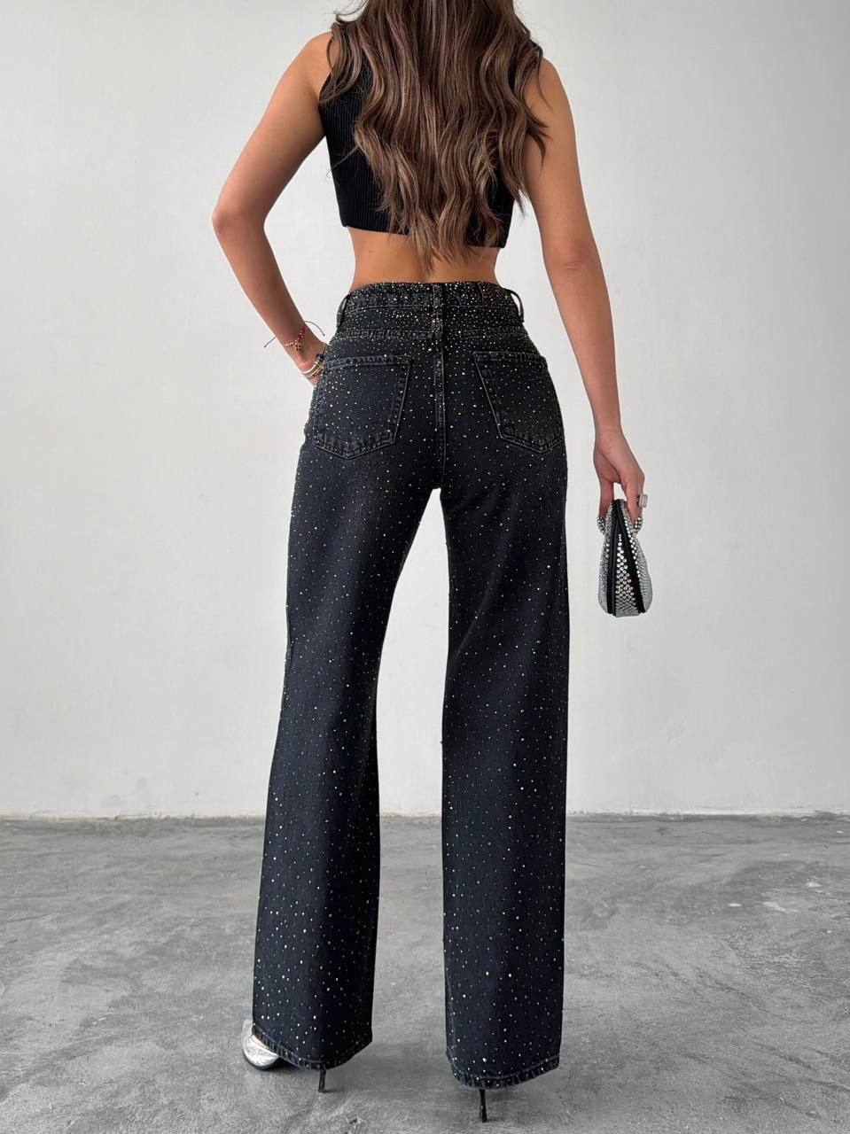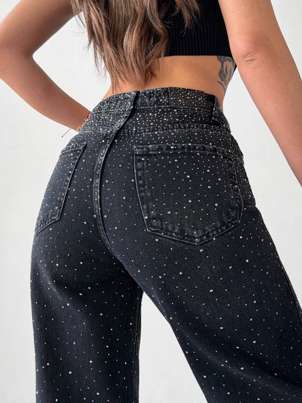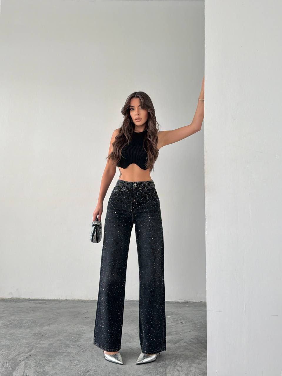 Жіночі Широкі Чорні Джинси Баггі з Камінням Стразами (Копировать)