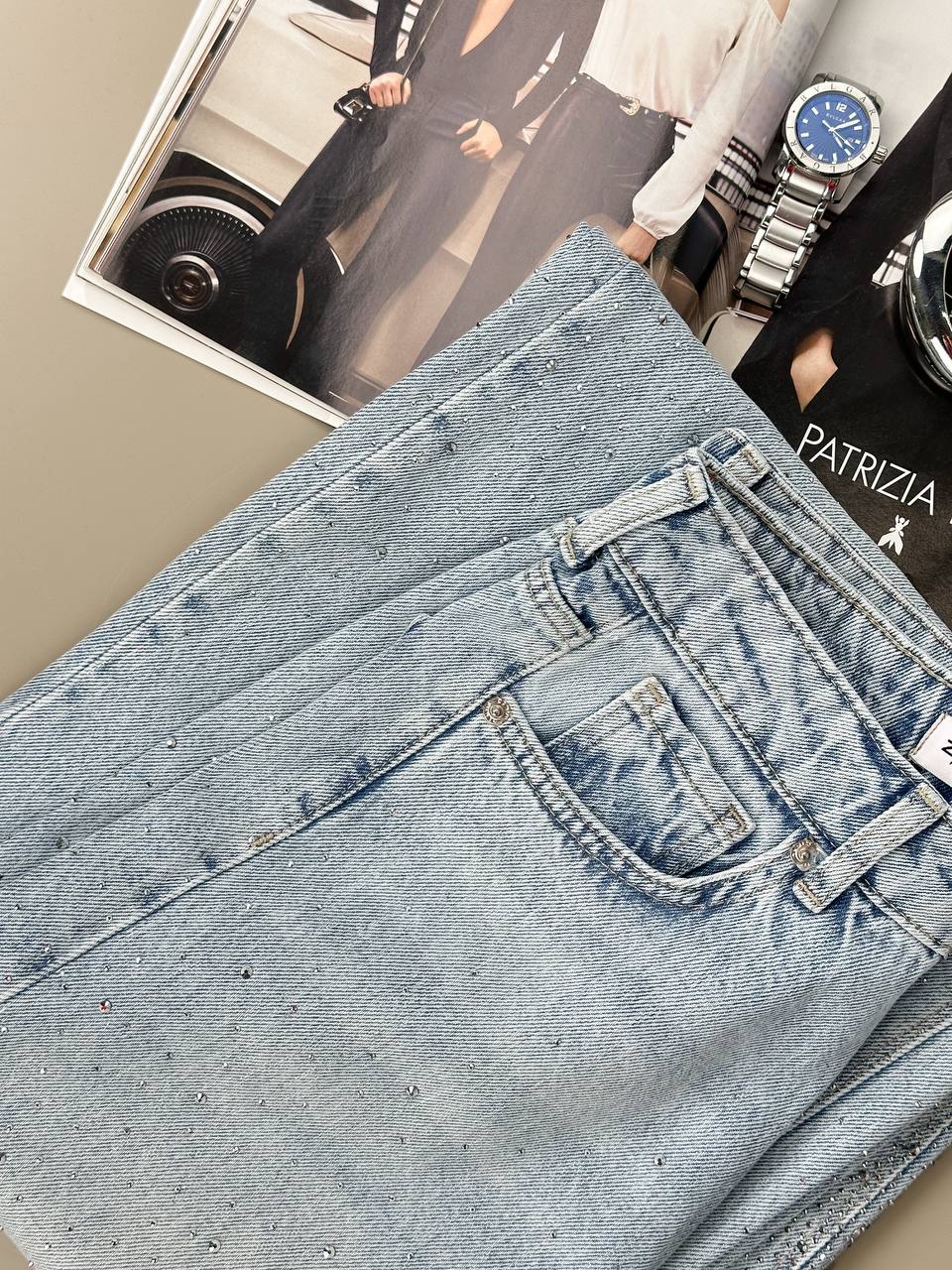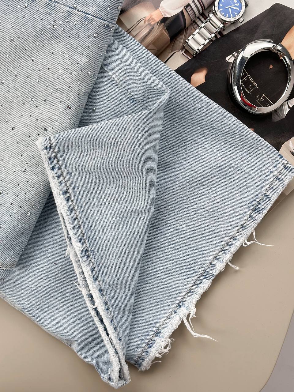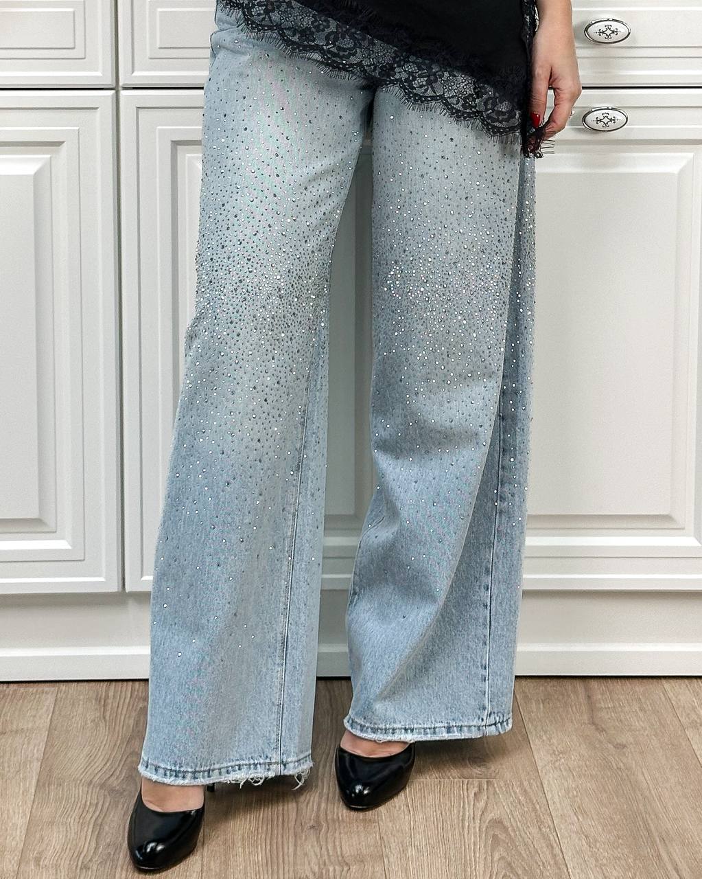 Жіночі Широкі Світло-Блакитні Джинси Палаццо Баггі з Камінням Стразами