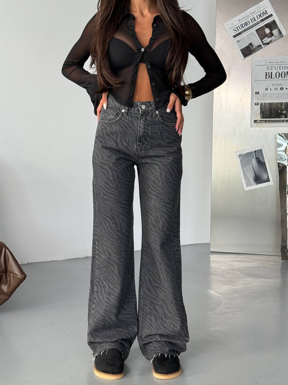 Жіночі Сірі Джинси Вільного Крою в Тигровий Принт