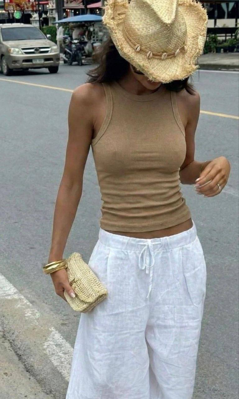 Жіноча Базова Бежева Варена Майка в Рубчик