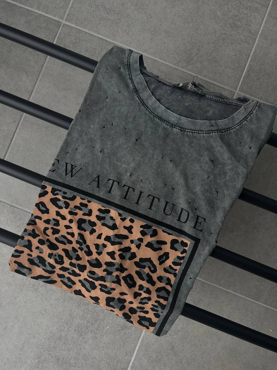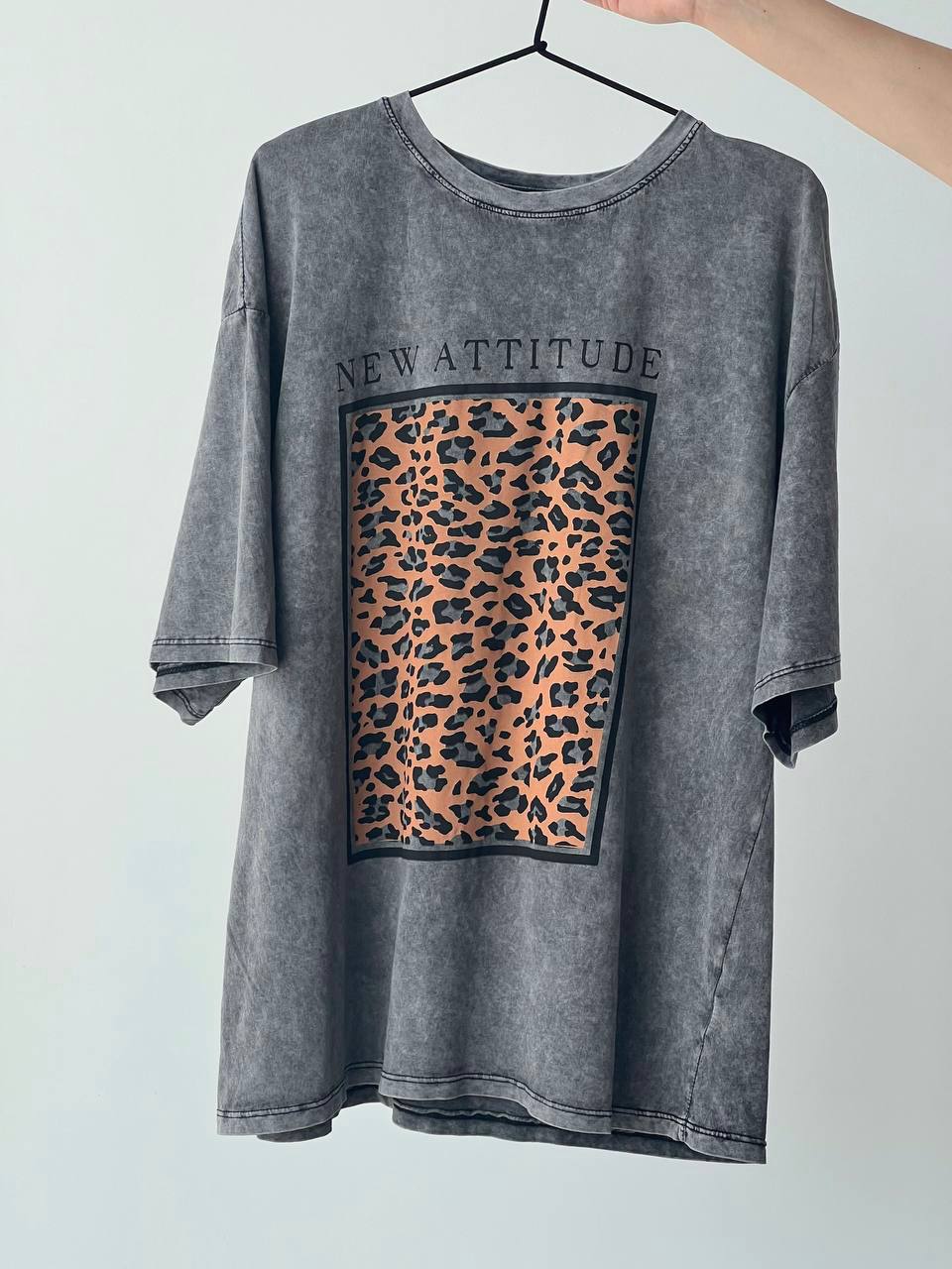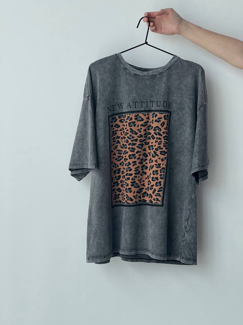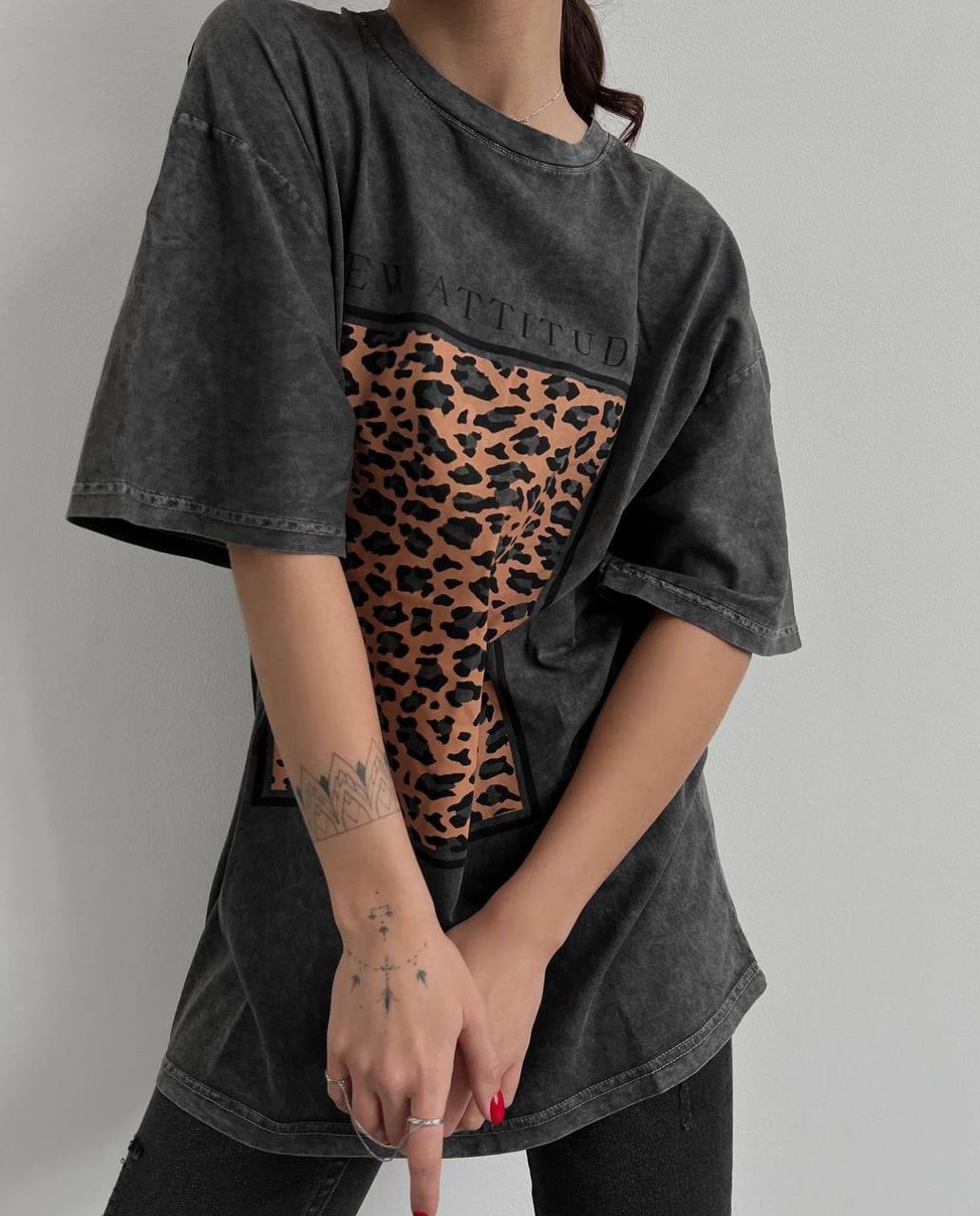 Жіноча Графітова Футболка Оверсайз під Вінтаж з Леопардовим Принтом Вставкою