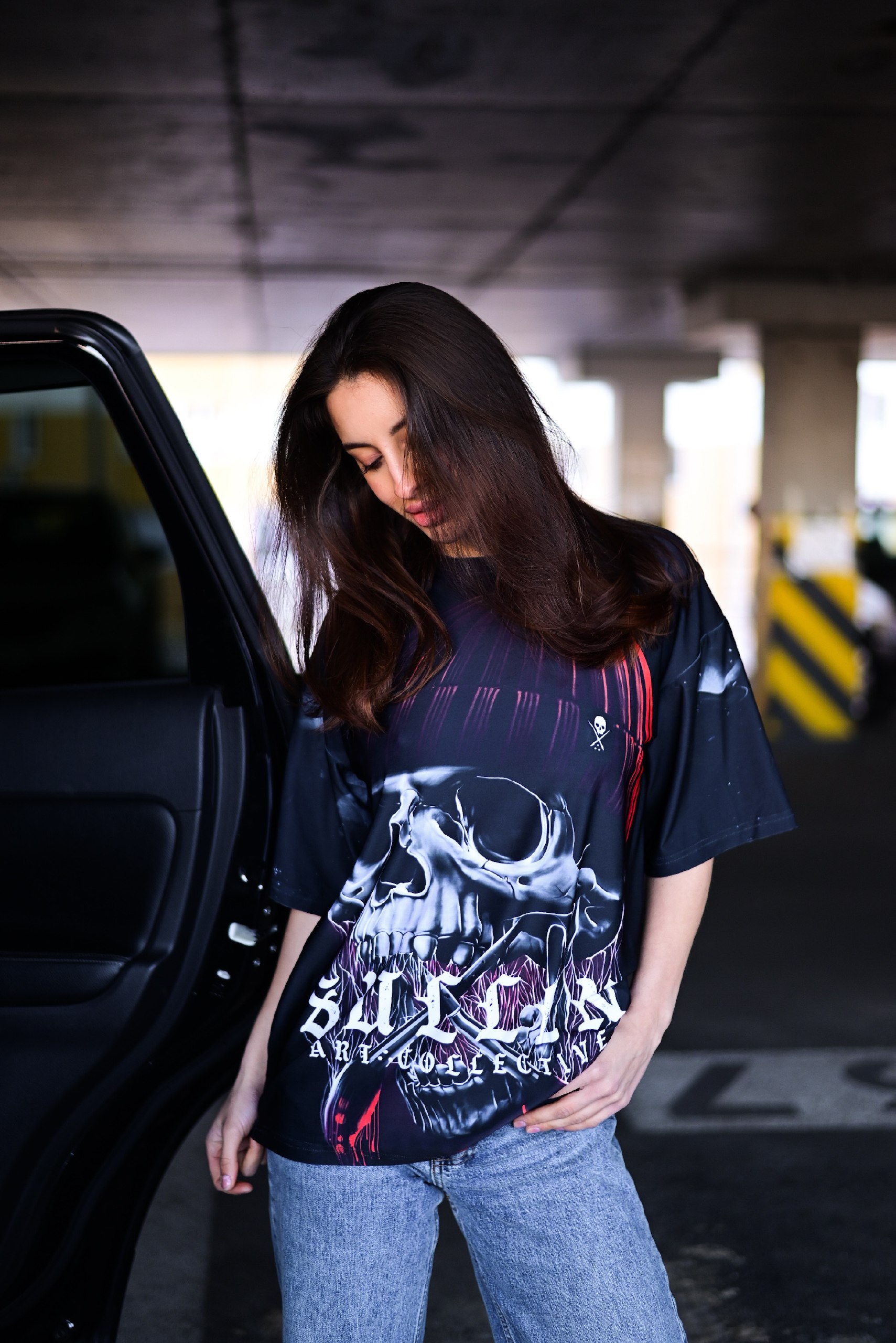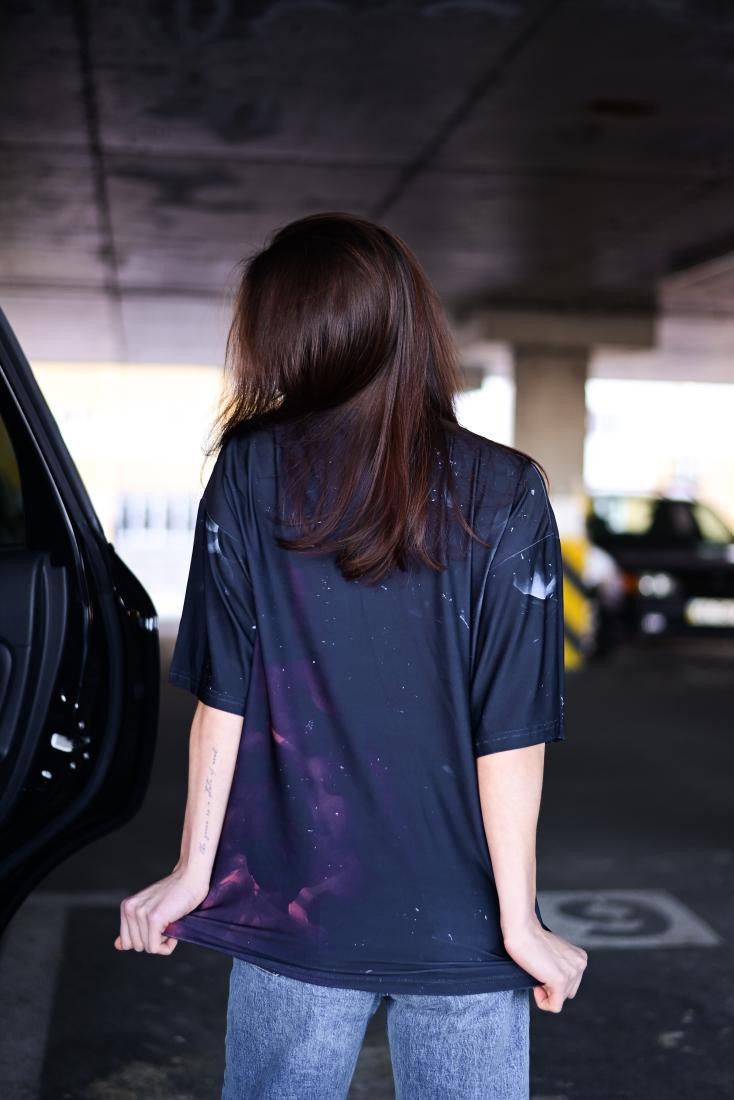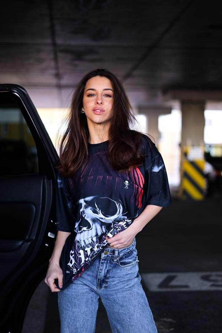 Жіноча Об’ємна Чорна Футболка Оверсайз Принт Череп