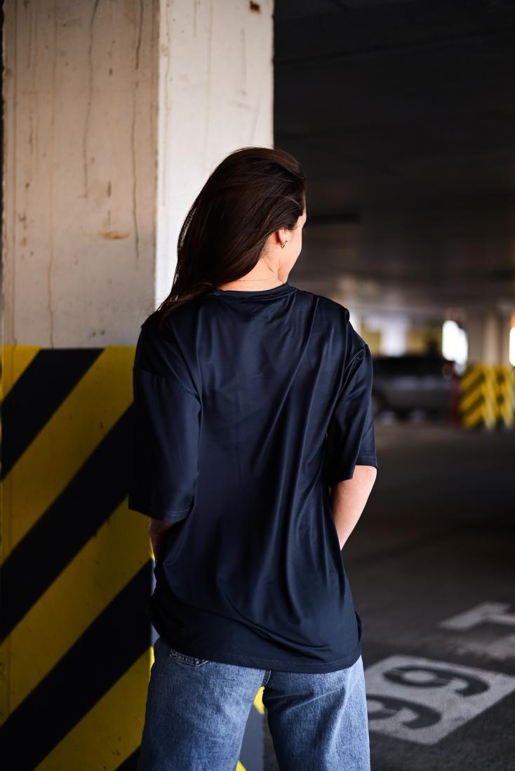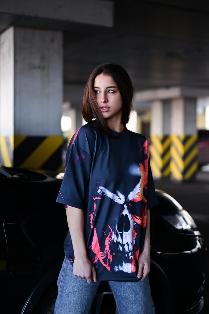 Жіноча Об’ємна Чорна Футболка Оверсайз з Принтом Череп