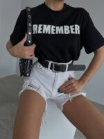 Будьте першим, хто залишив відгук “Жіноча Подовжена Чорна Футболка Оверсайз з написом “Remember””“ Скасувати коментар