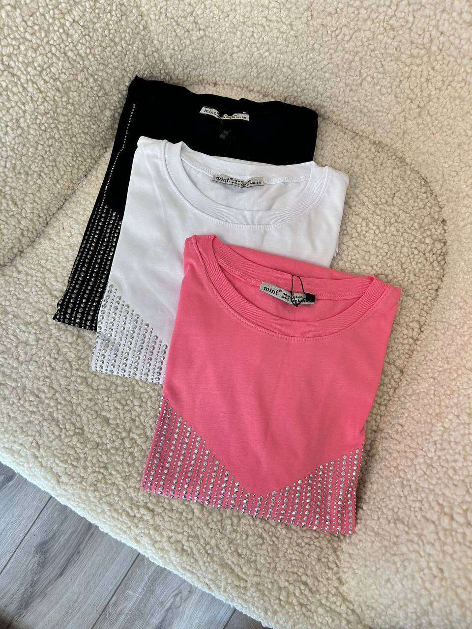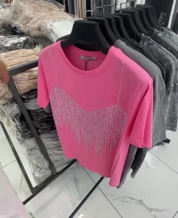 Жіноча Рожева Футболка Вільного Крою зі Стразами Імітуючі Топ