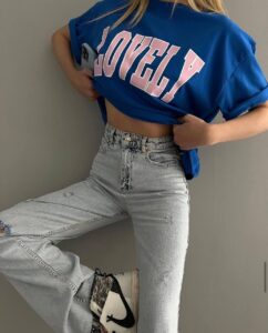 Будьте першим, хто залишив відгук “Жіноча Синя Футболка Оверсайз з Принтом Написом “Lovely””“ Скасувати коментар