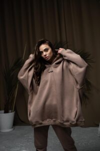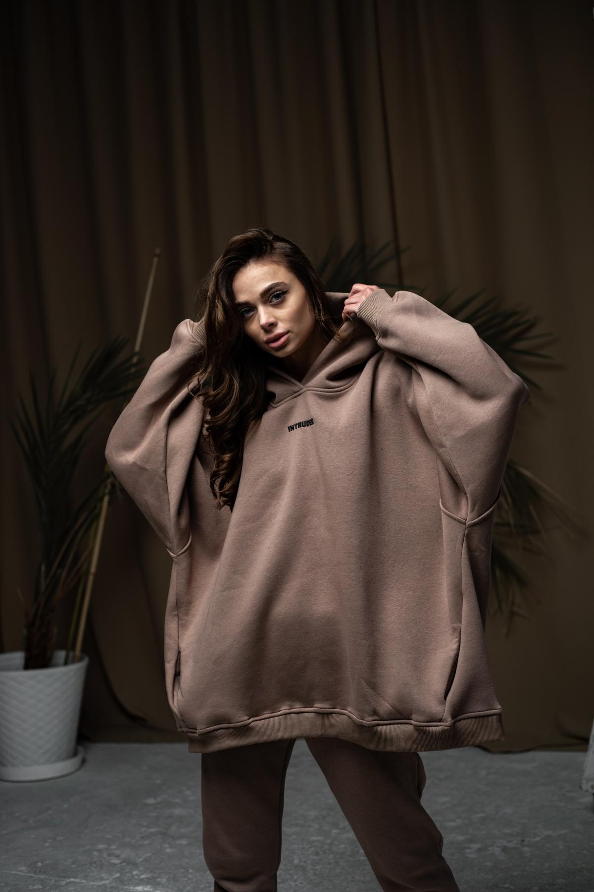 Жіноче Об’ємне Коричневе Худі Оверсайз Базове на Флісі з Бічні Прорізні Кишені