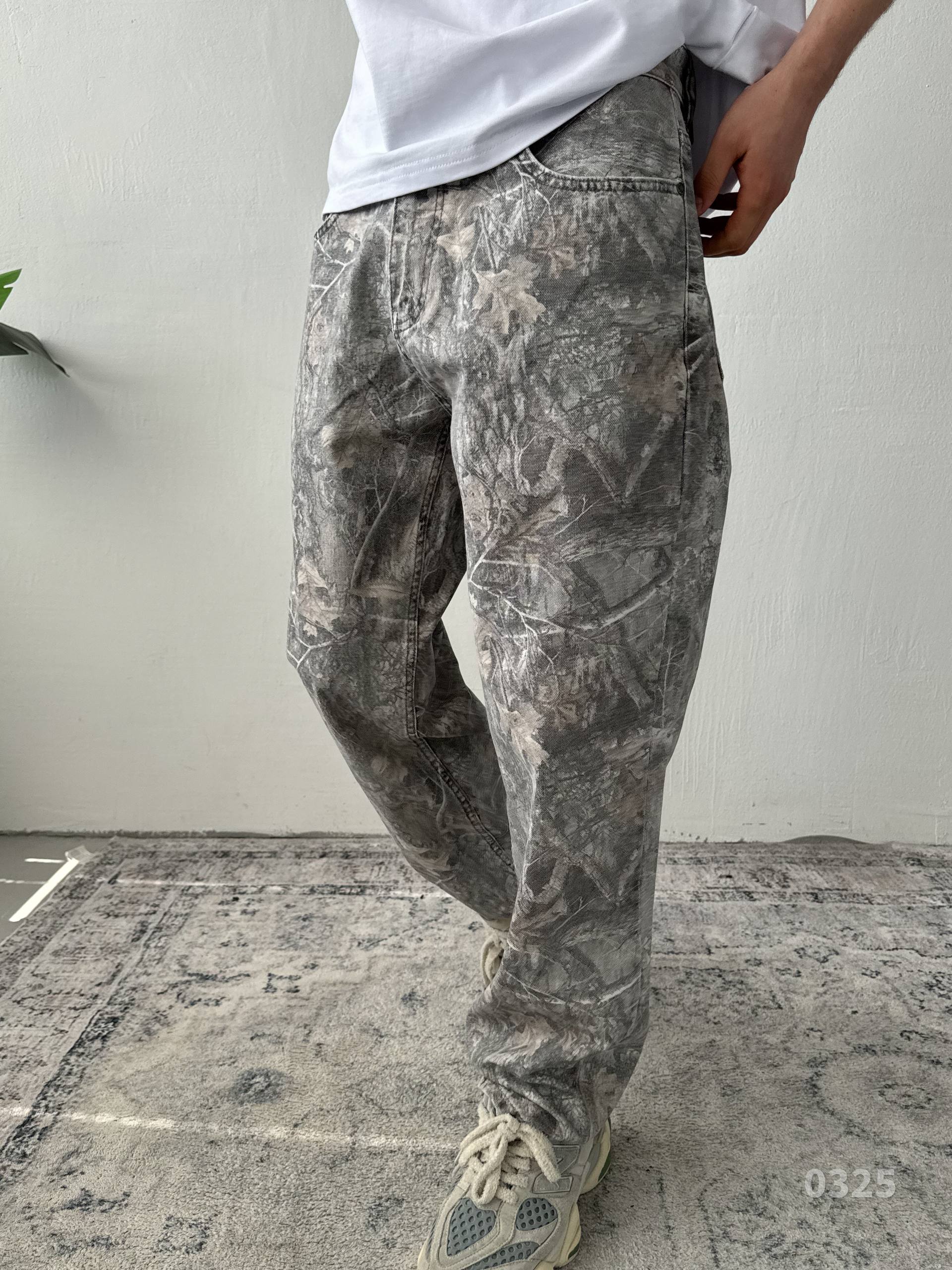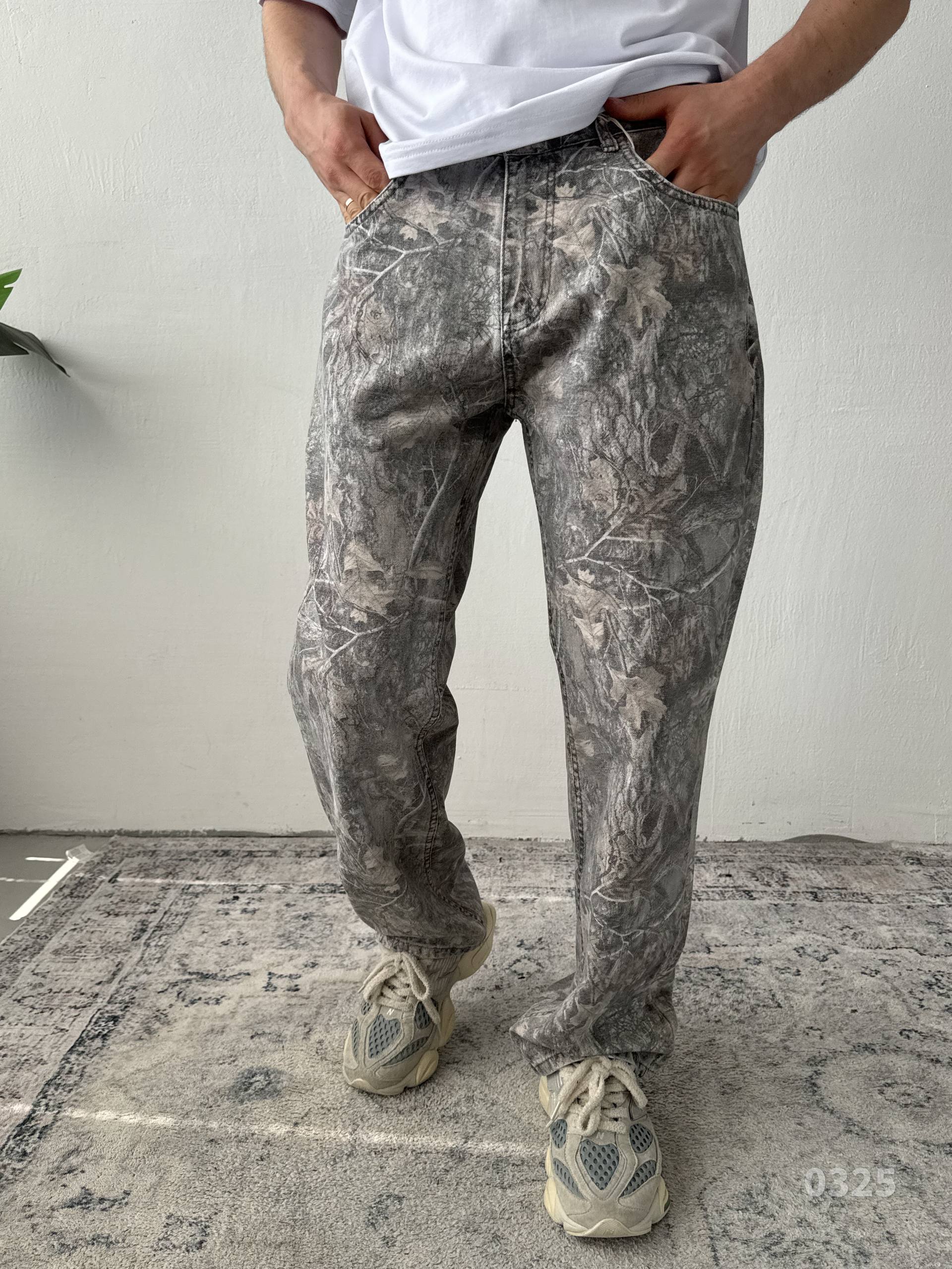 Чоловічі Широкі Сірі Джинси – Джинсові Штани Баггі в Принт