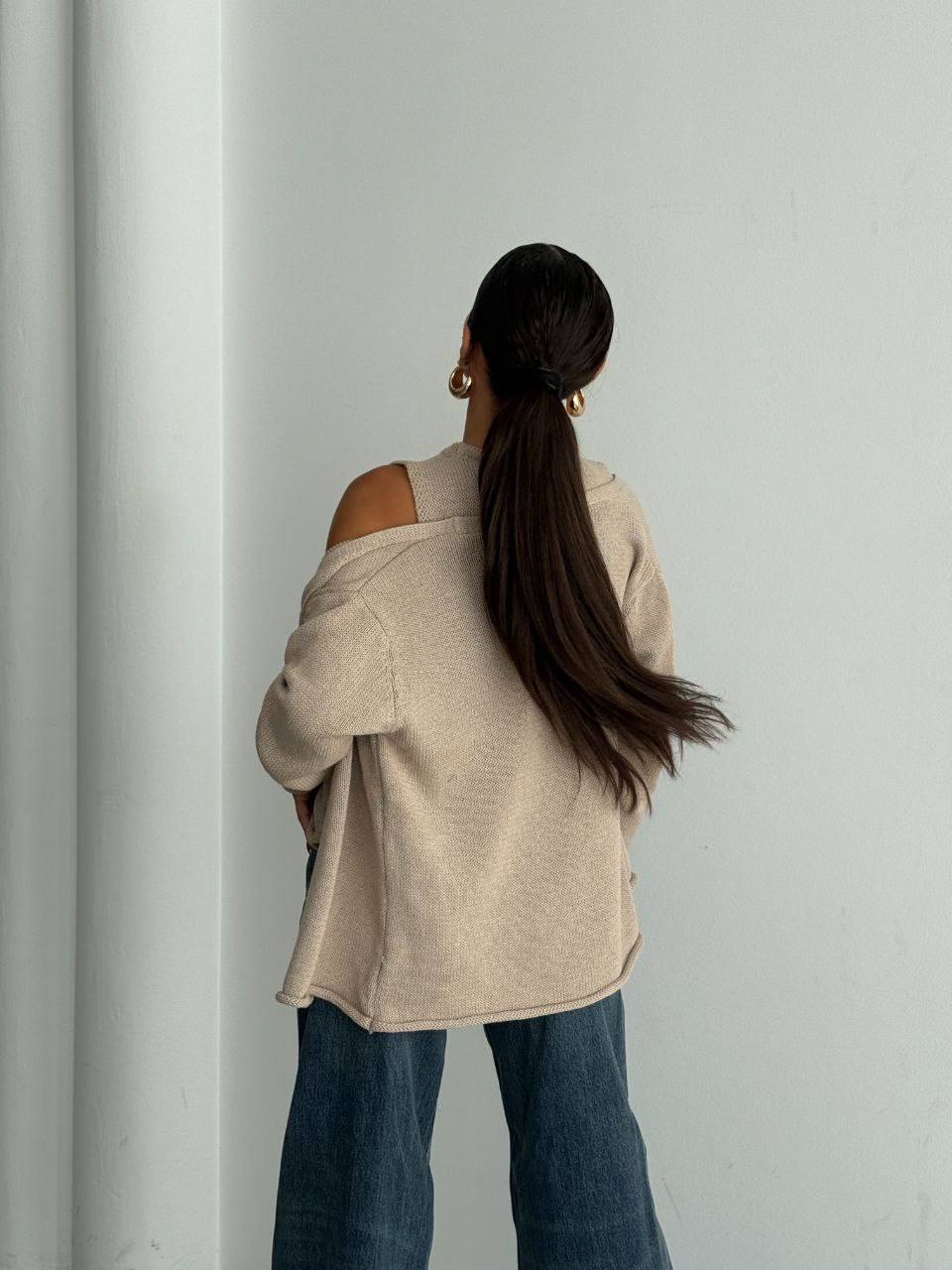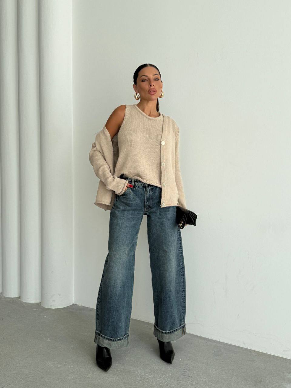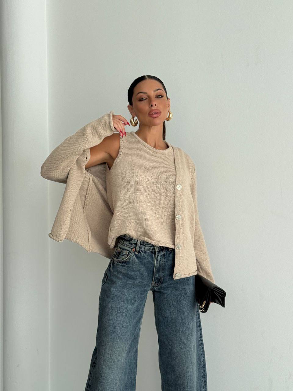 Жіночий Базовий Трикотажний Бежевий Кардиган на Ґудзиках + Топ