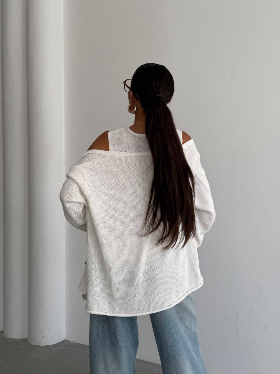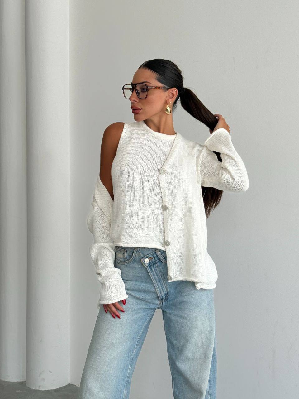 Жіночий Базовий Трикотажний Білий Кардиган на Ґудзиках + Топ