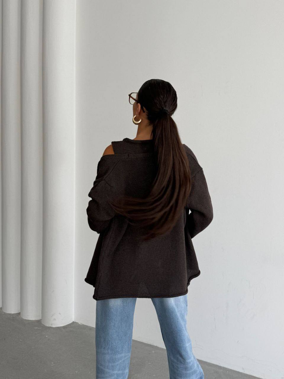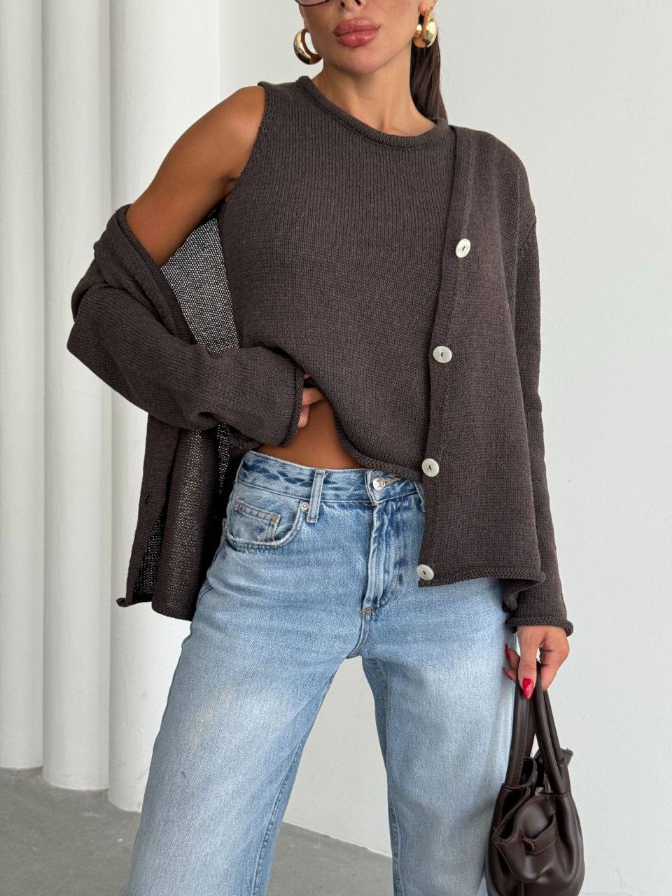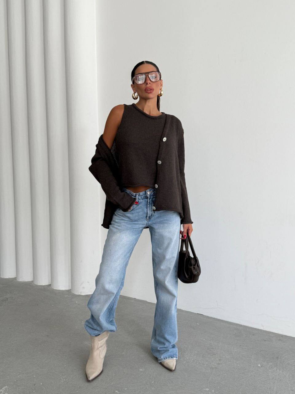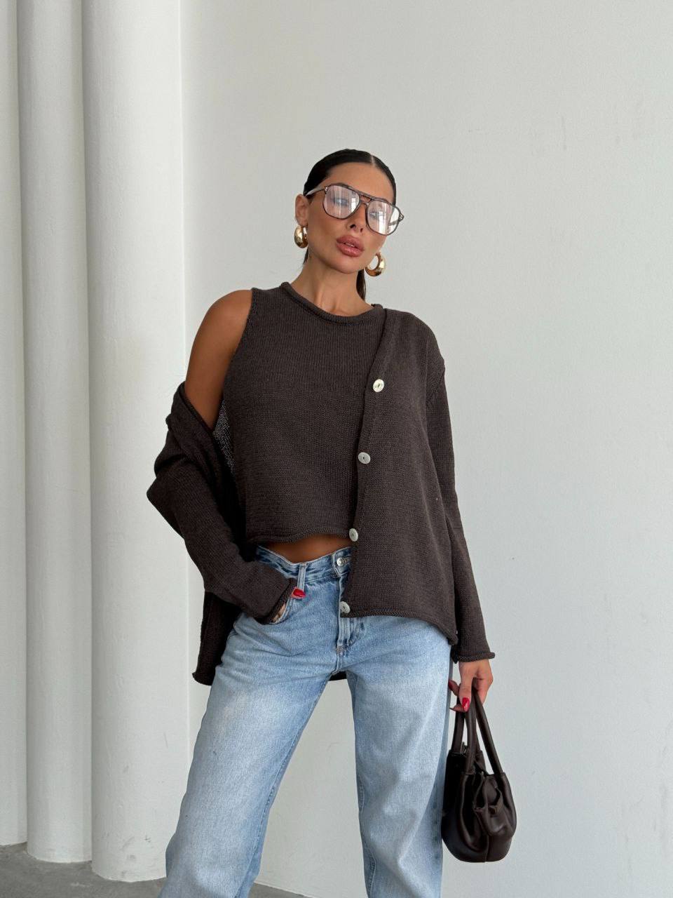 Жіночий Базовий Трикотажний Коричневий Кардиган на Ґудзиках + Топ