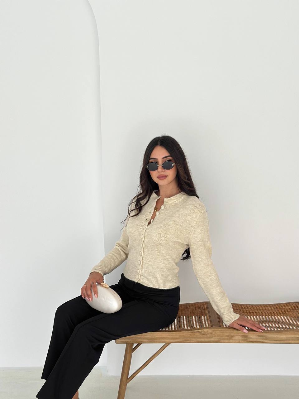 Жіночий Бежевий Кардиган з Круглим Вирізом – Базовий Класичний на Ґудзиках
