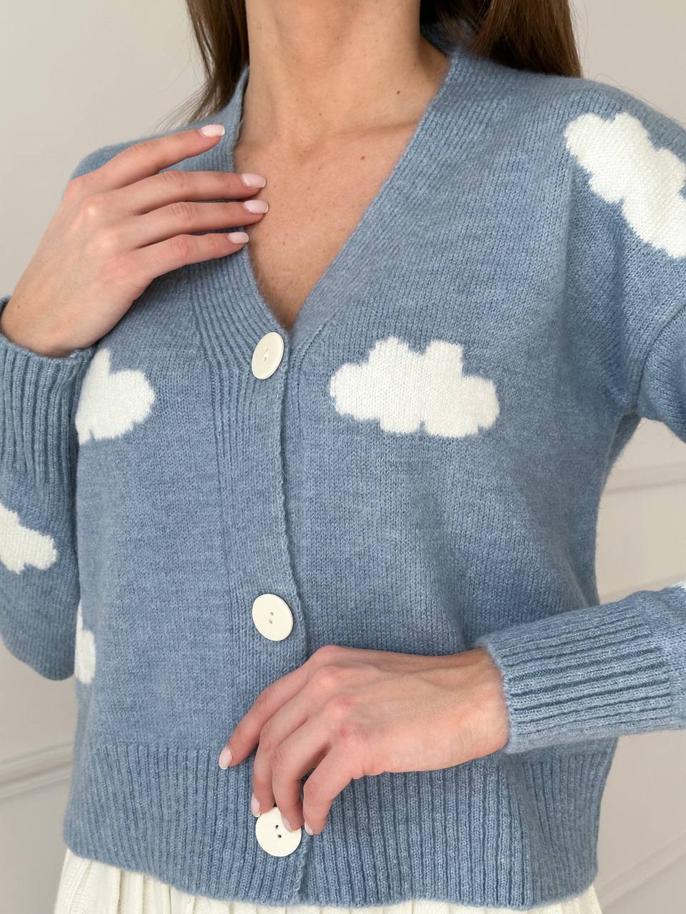 Жіночий Блакитний Кардиган на Ґудзиках з Хмаринками