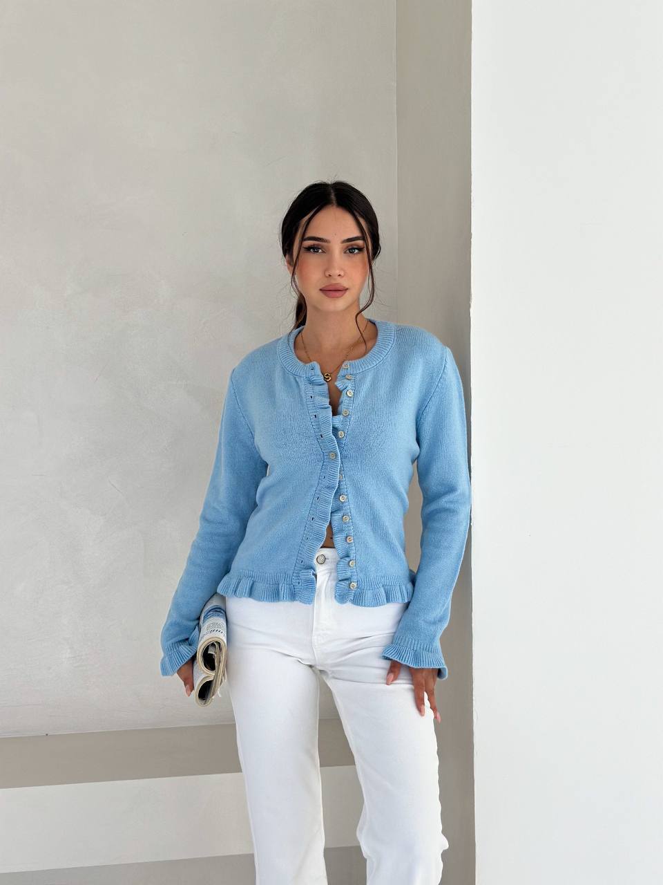 Жіночий Блакитний Кардиган на Ґудзиках з Рюшами