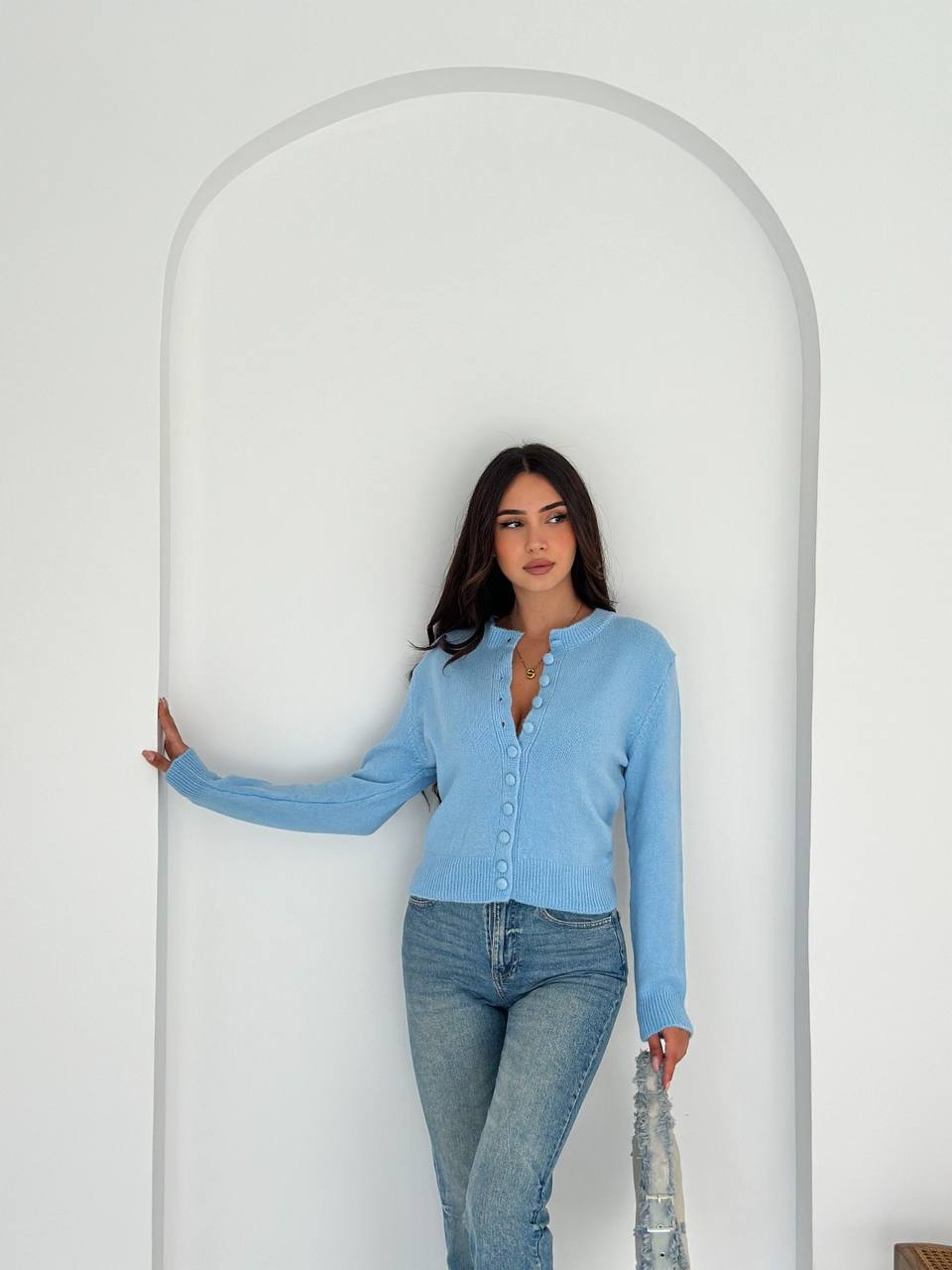 Жіночий Блакитний Кардиган з Круглим Вирізом – Базовий Класичний на Ґудзиках
