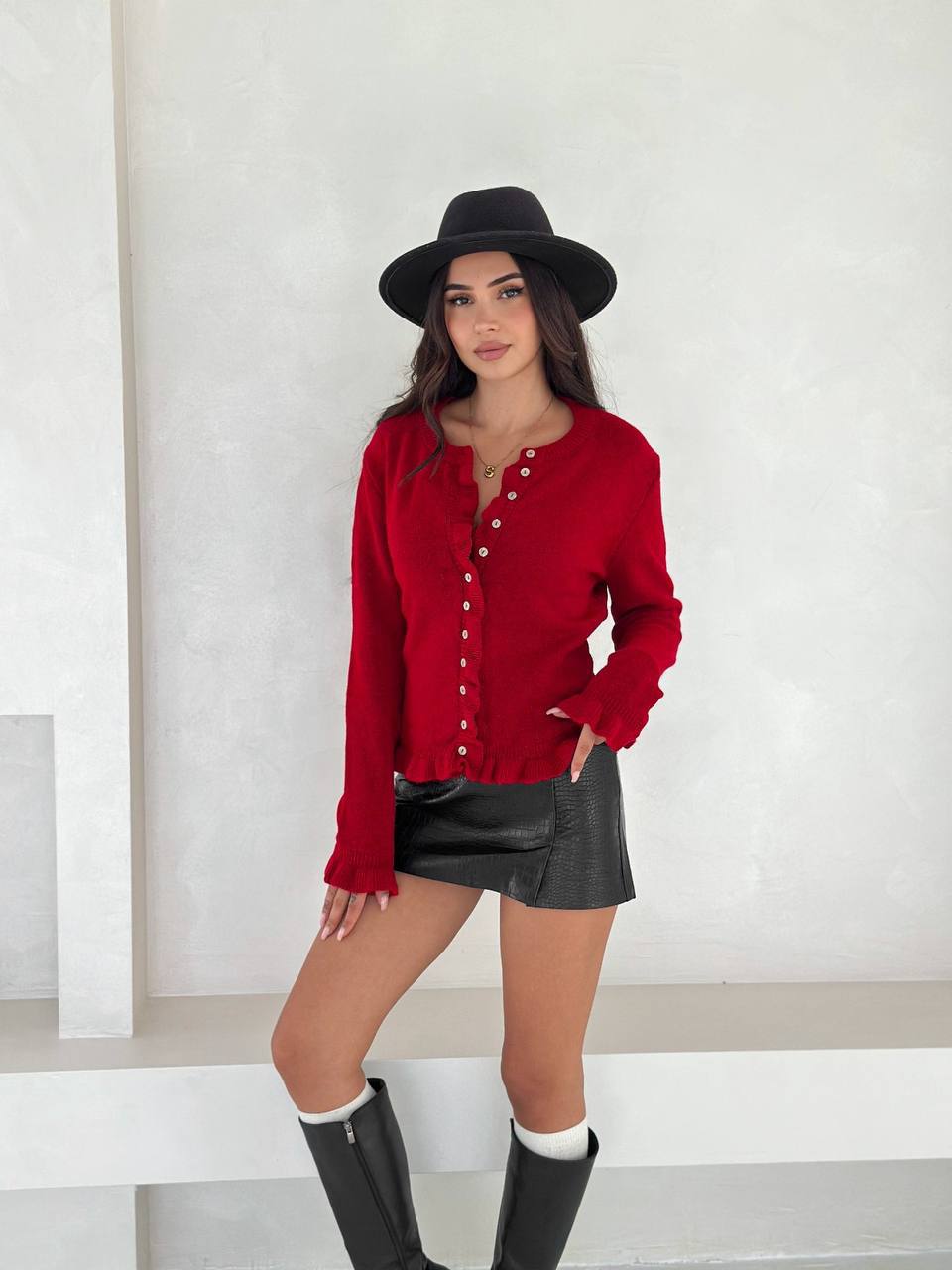 Жіночий Червоний Кардиган на Ґудзиках з Рюшами