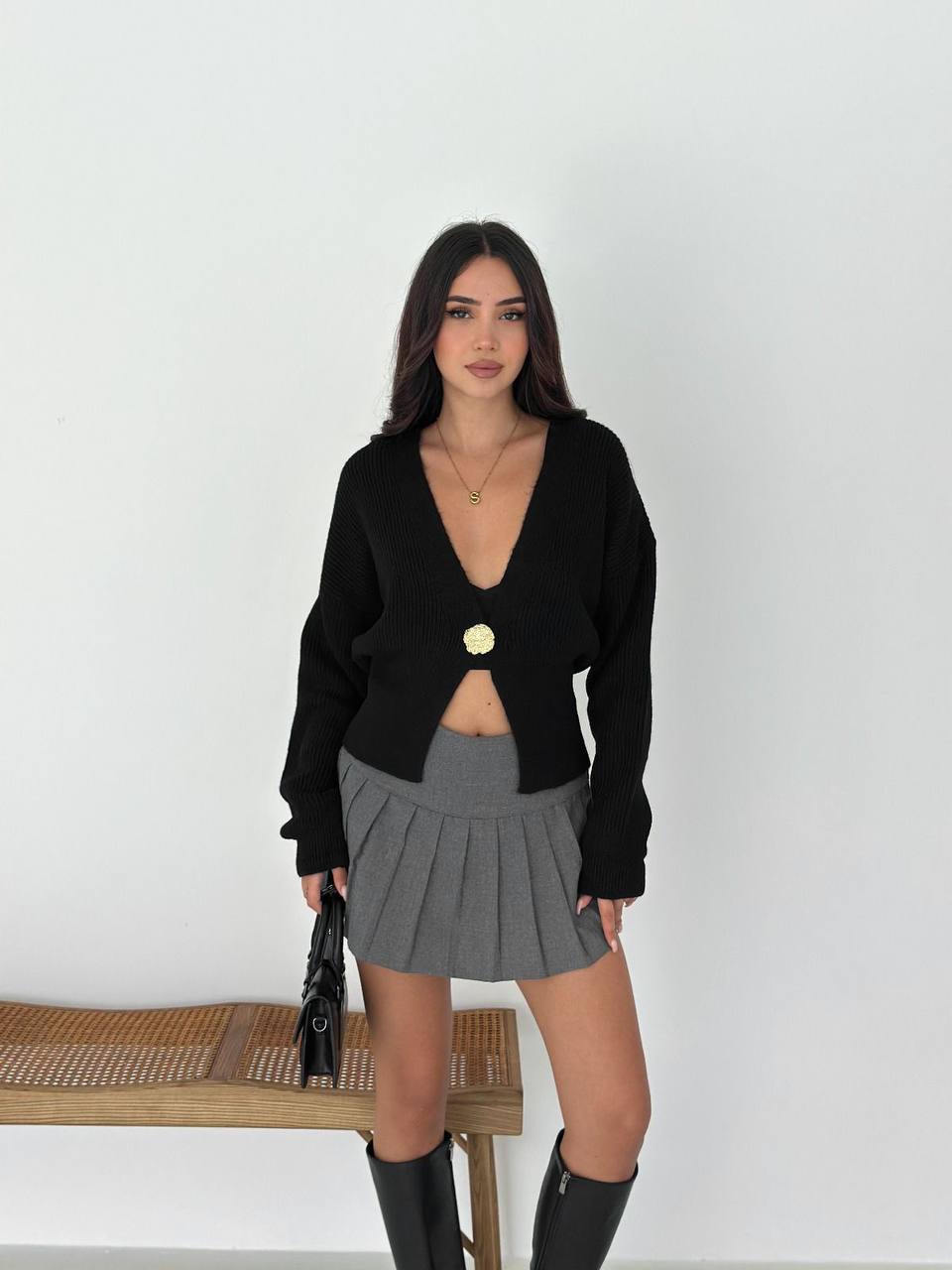 Жіночий Чорний Кардиган на Одному Ґудзику з V-подібним Вирізом і Заниженою Лінією Плеча