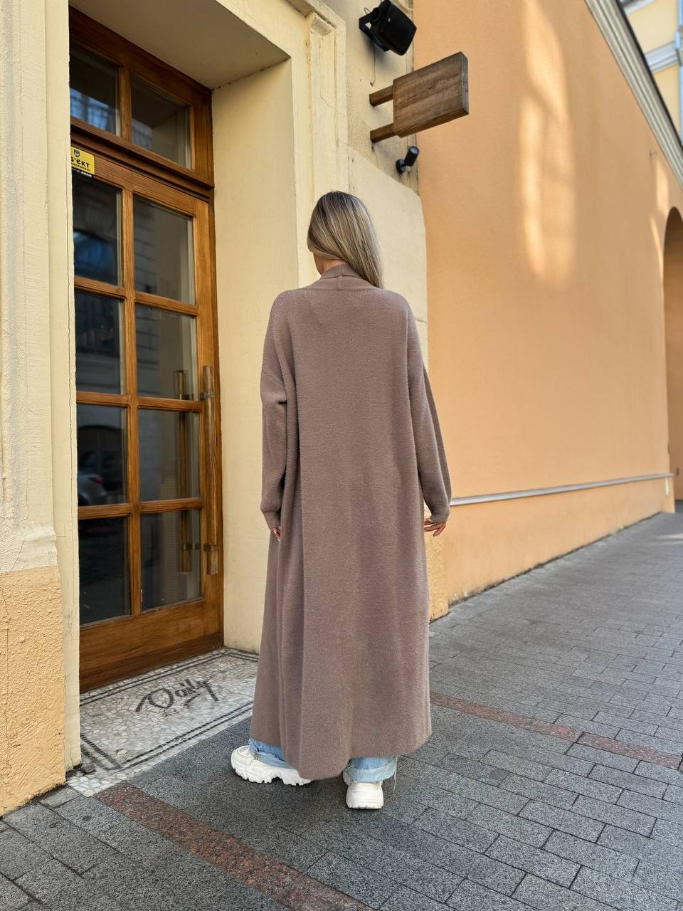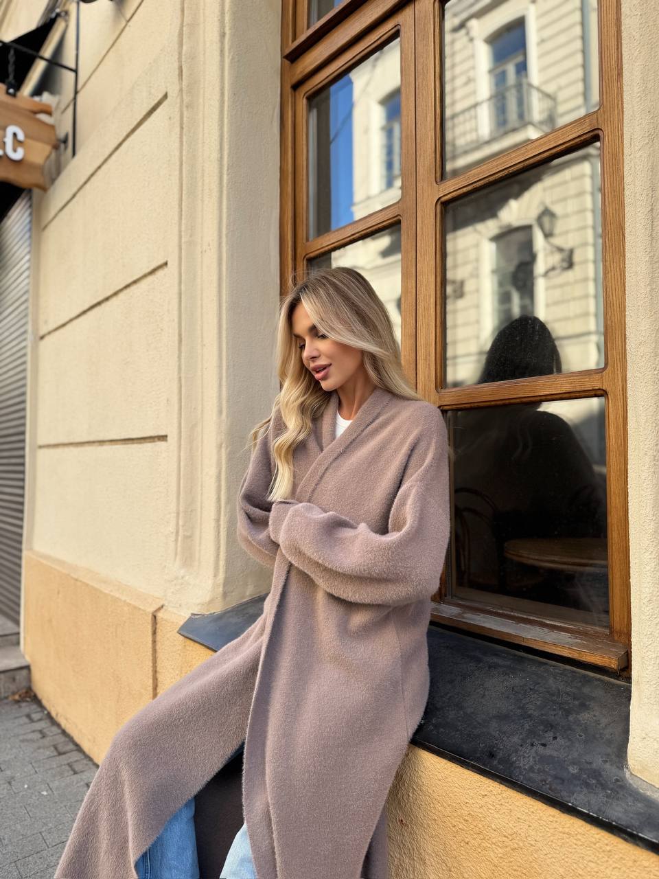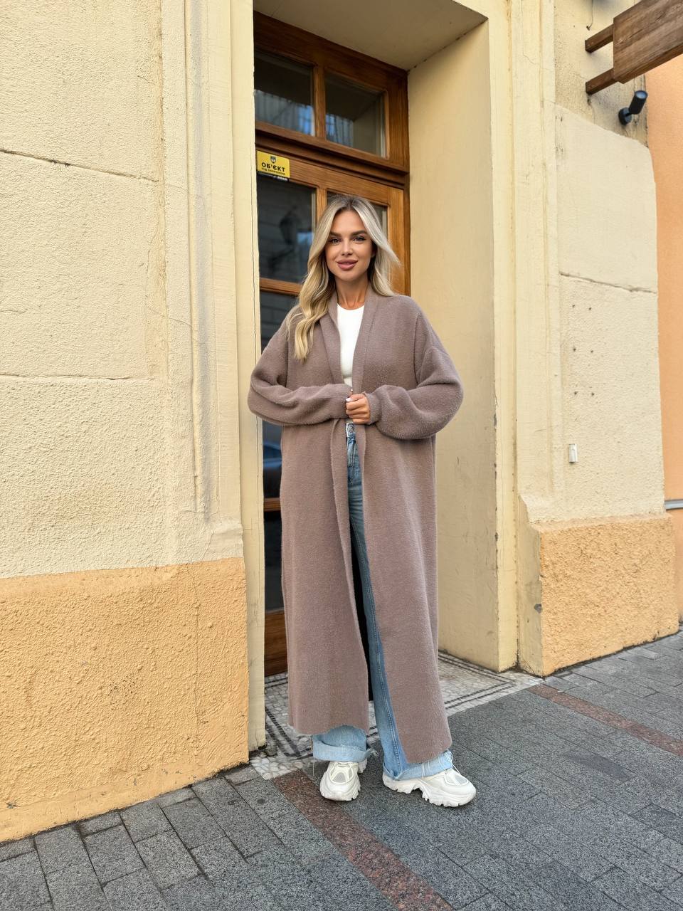 Жіночий Довгий Кардиган Мокко – М’який Пухнастий Вільного Крою