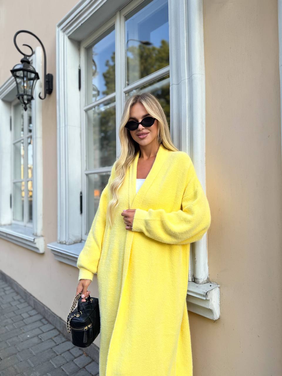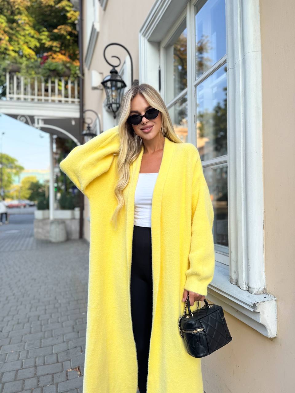 Жіночий Довгий Жовтий Кардиган – М’який Пухнастий Вільного Крою