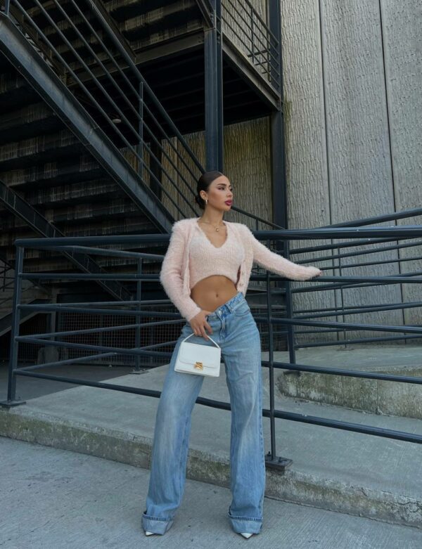 Жіночий Короткий Рожевий Пухнастий Кардиган з Топом