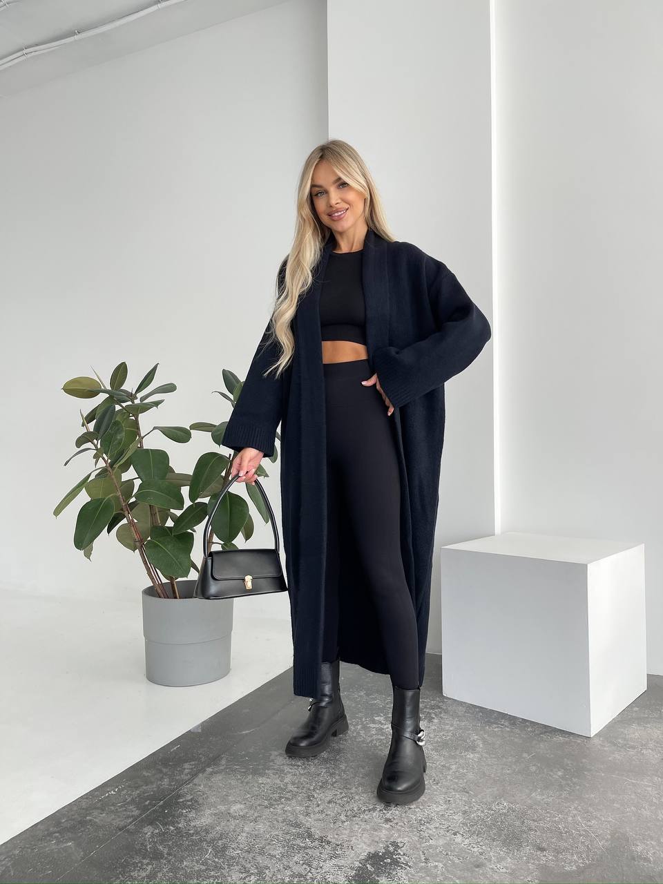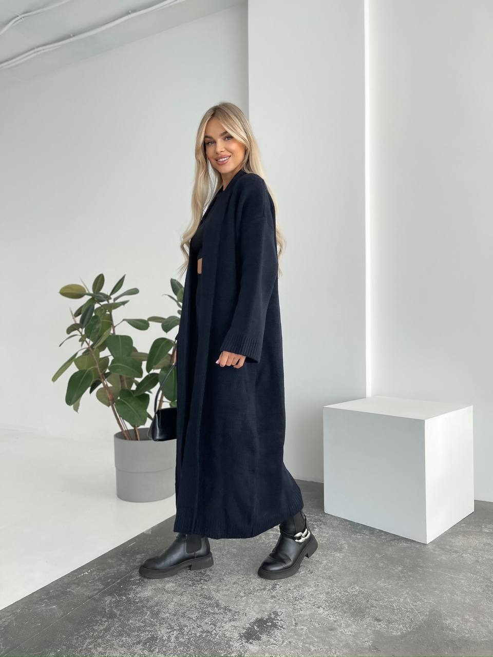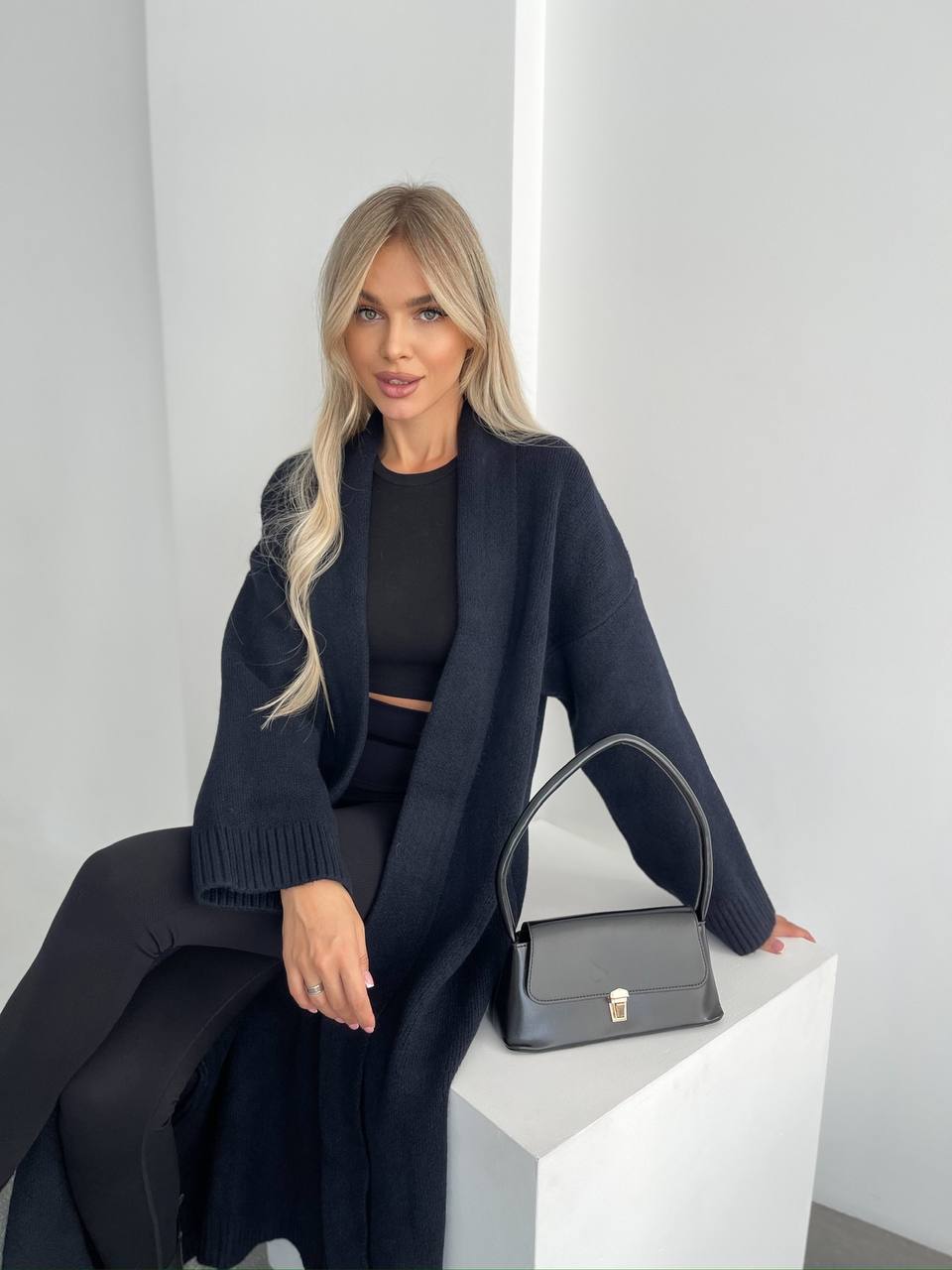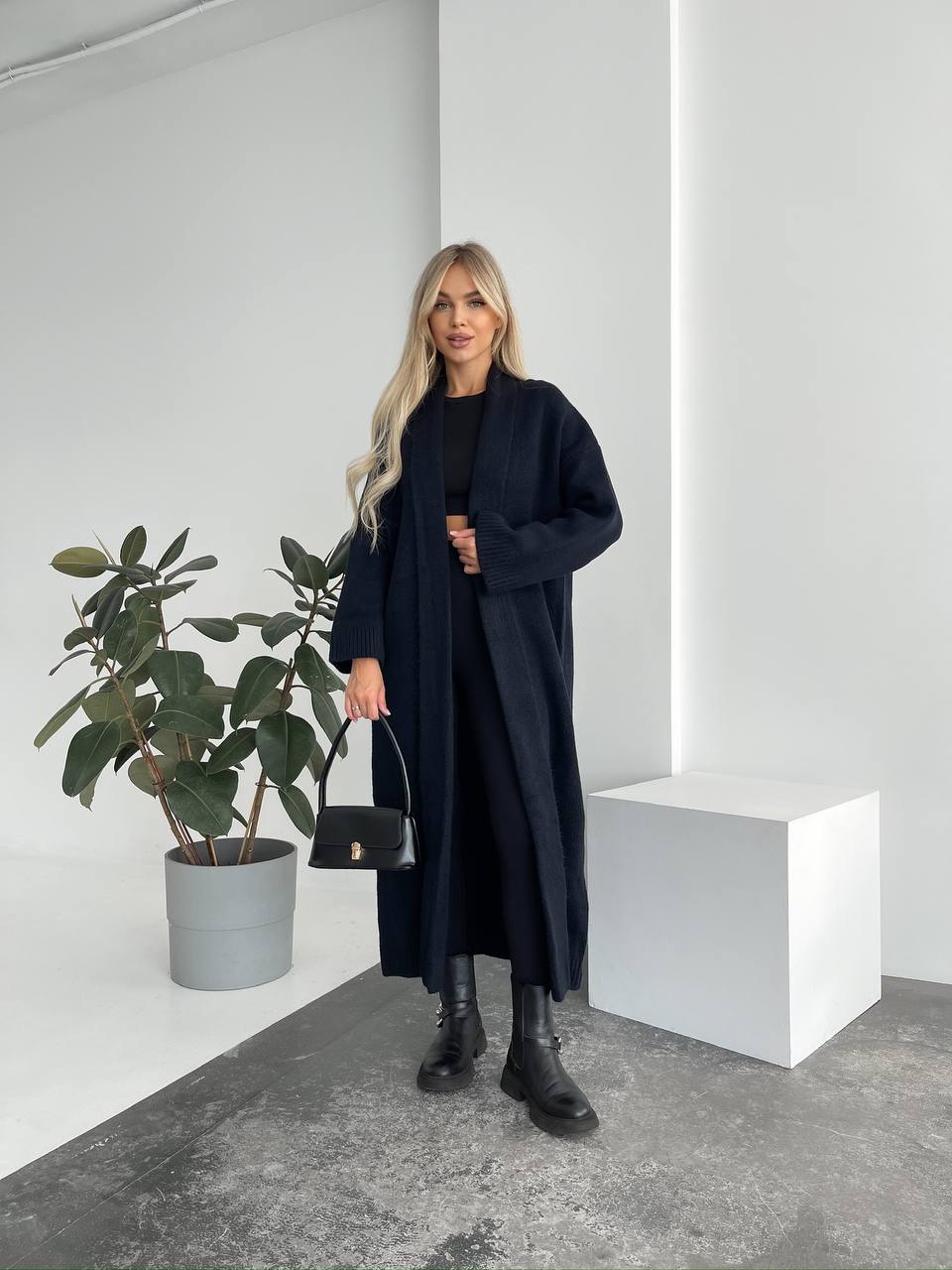 Жіночий Подовжений Синій Кардиган – Теплий з М’якої Пухнастої Пряжі