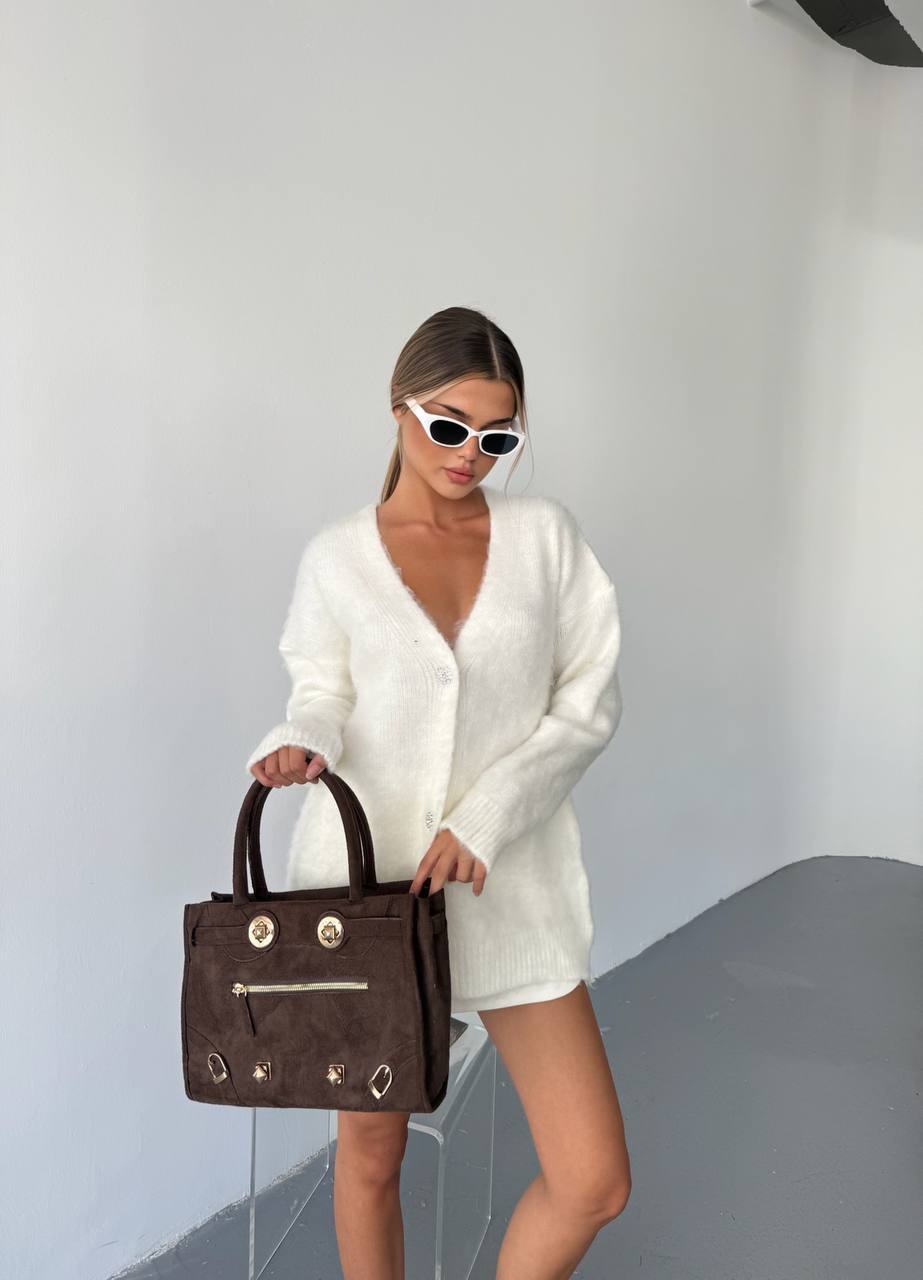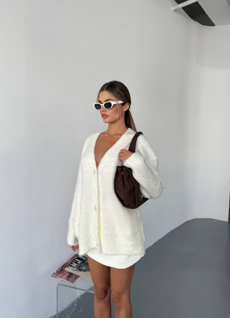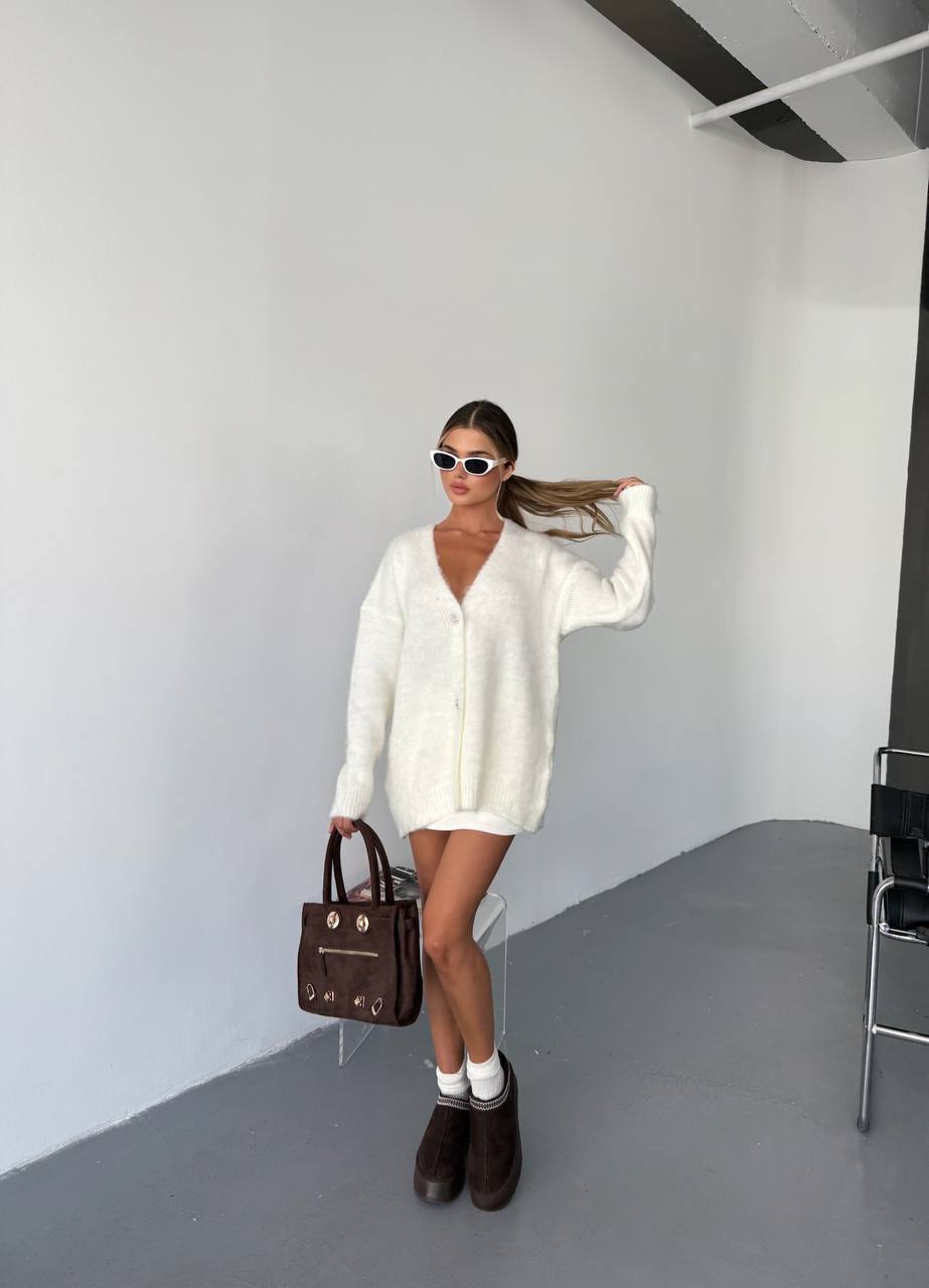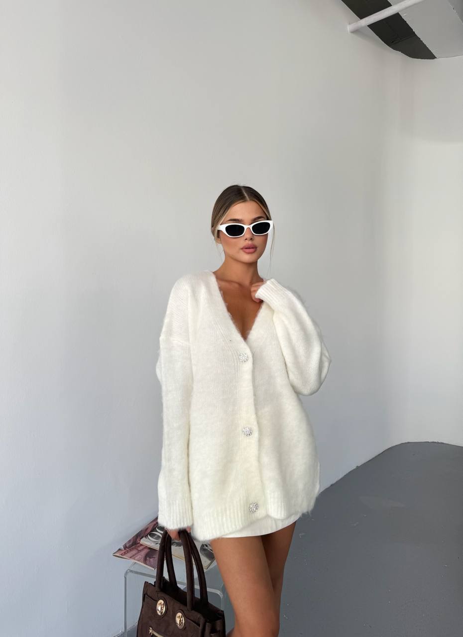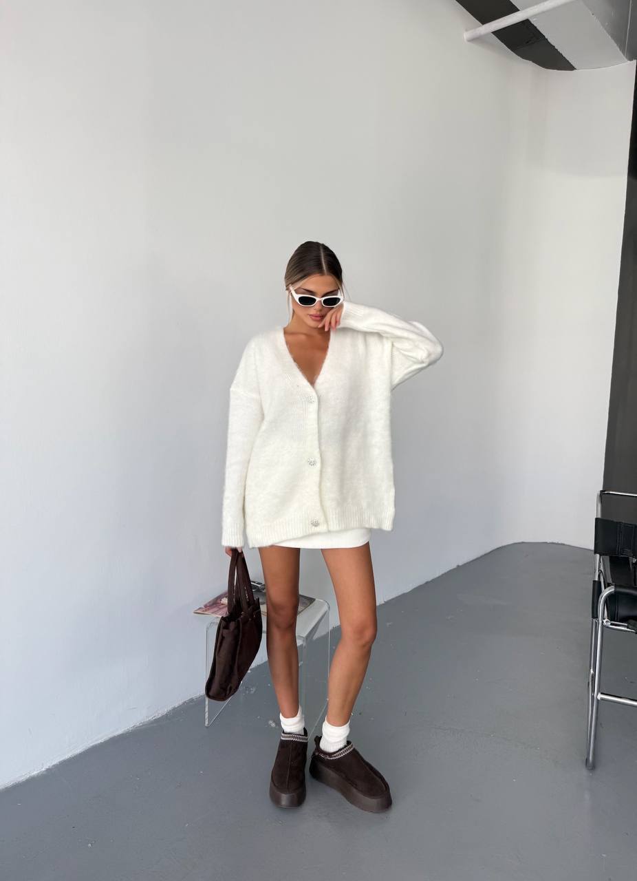Жіночий Пухнастий Молочний Кардиган Вільного Крою на Ґудзиках