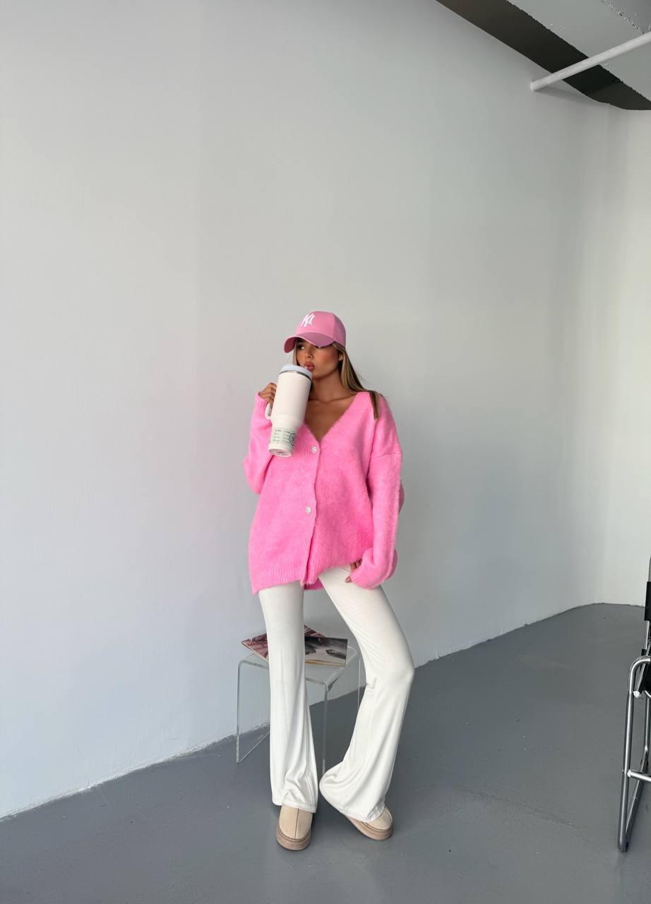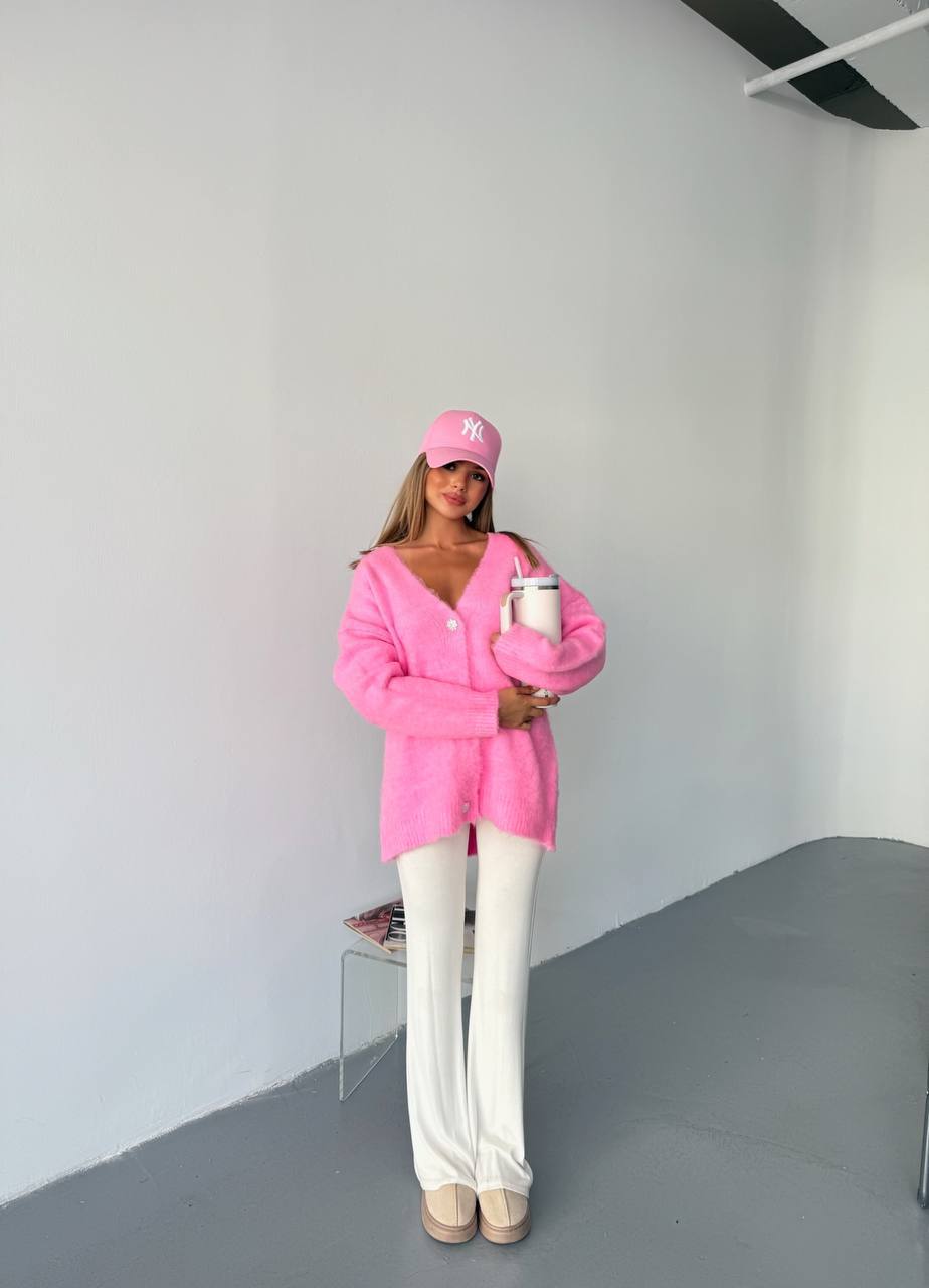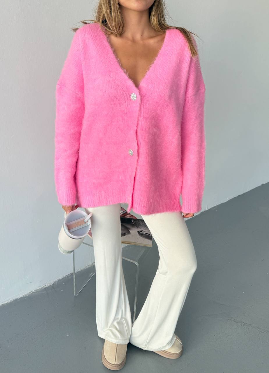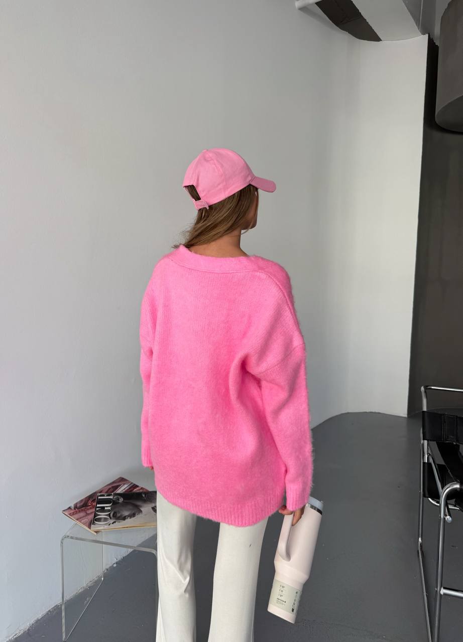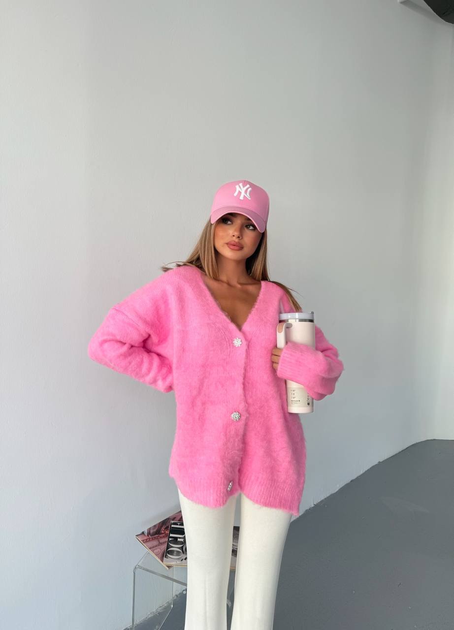 Жіночий Пухнастий Рожевий Кардиган Вільного Крою на Ґудзиках