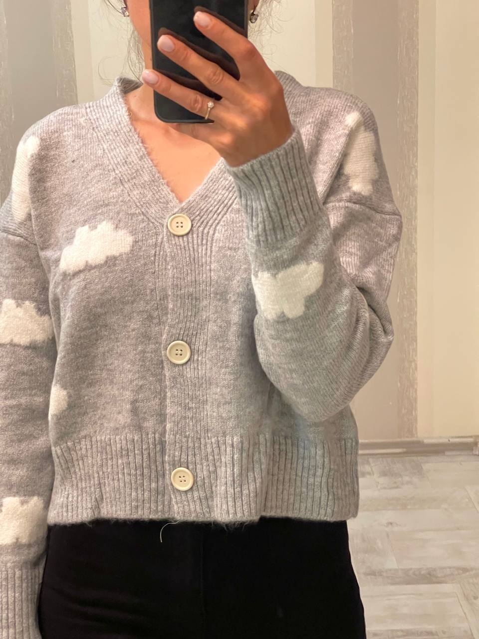 Жіночий Сірий Кардиган на Ґудзиках з Хмаринками