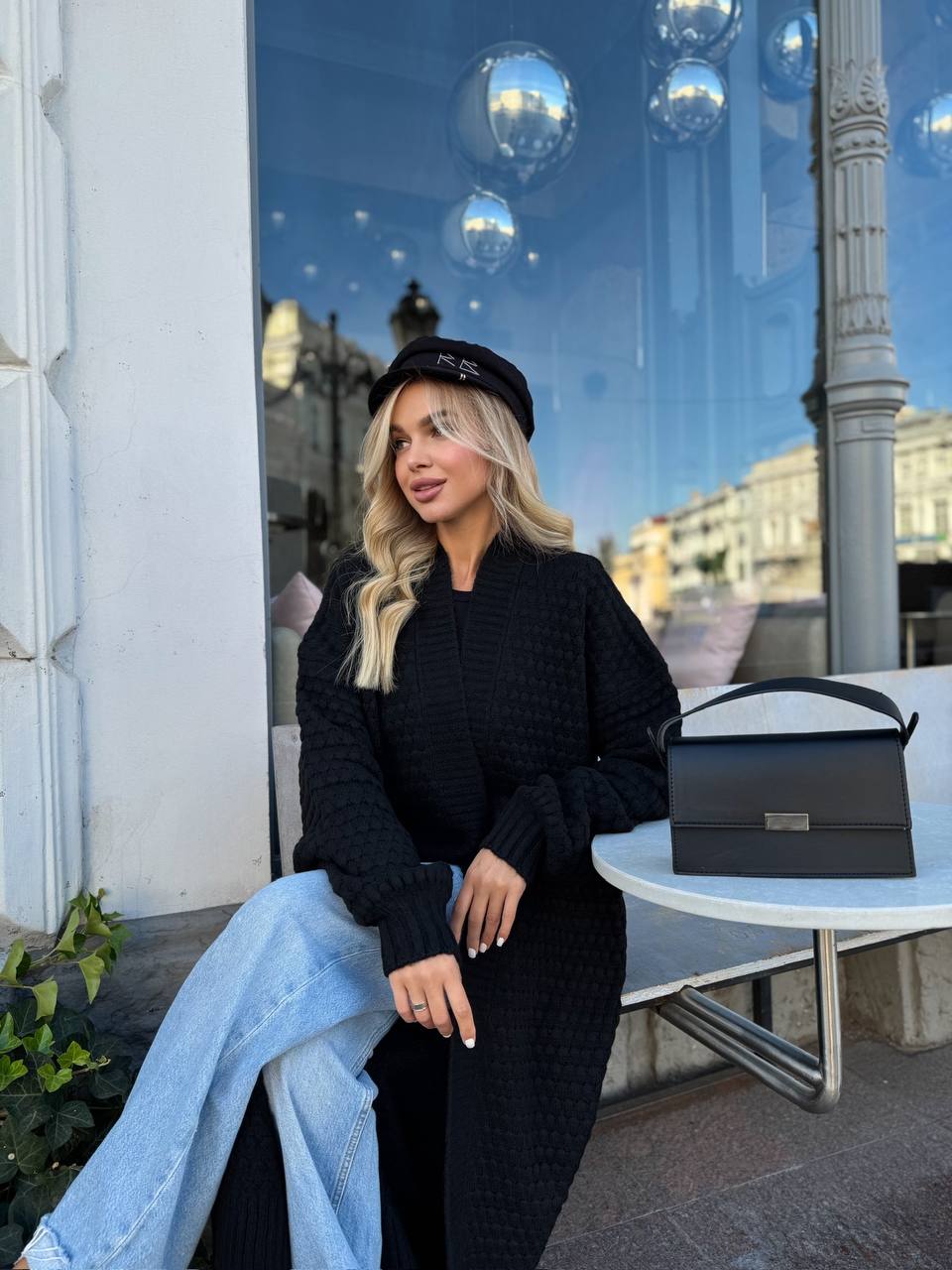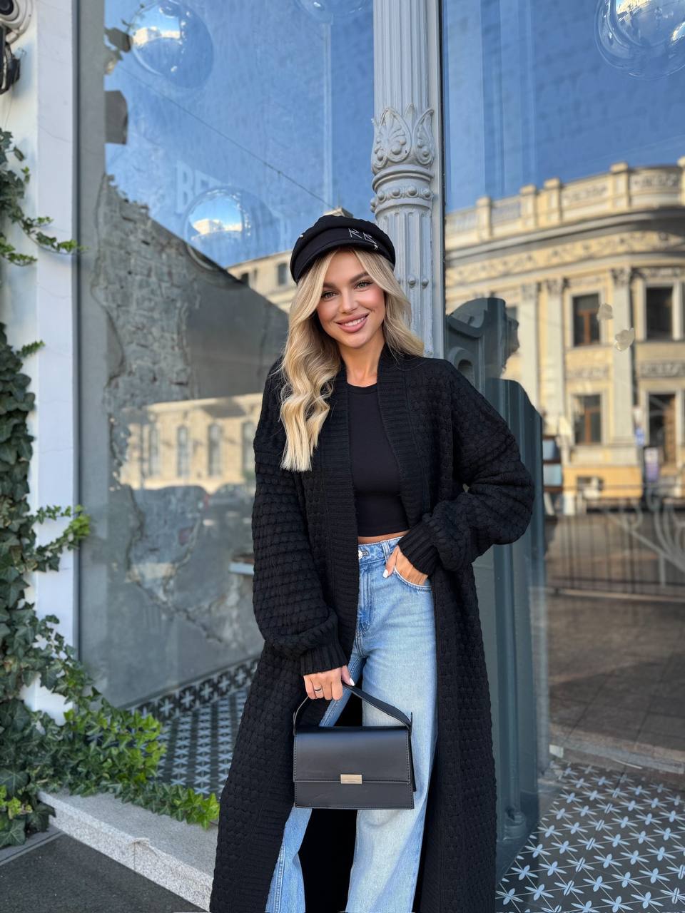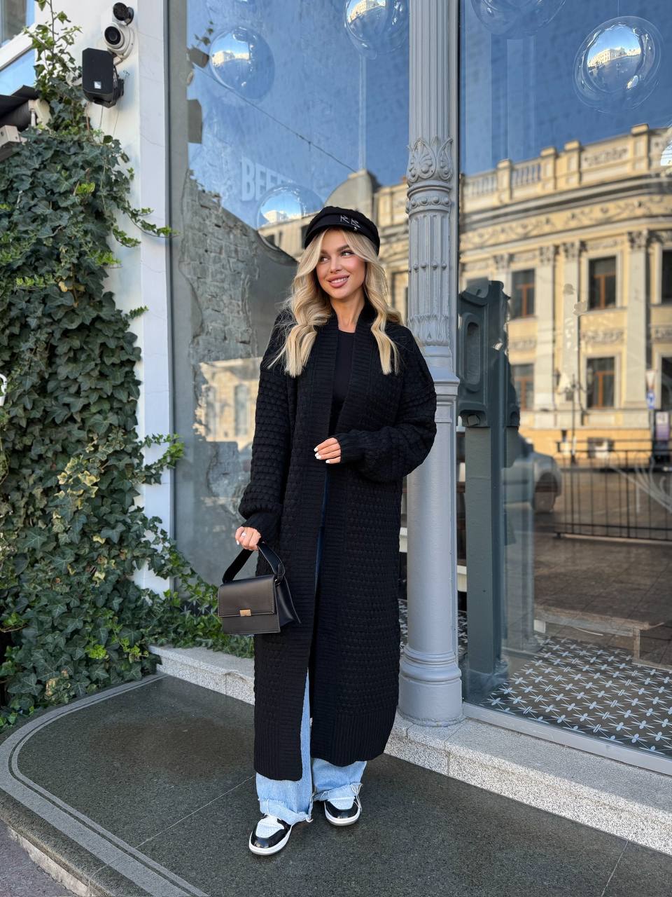 Жіночий Теплий Чорний Кардиган – Подовжений Вільного Крою
