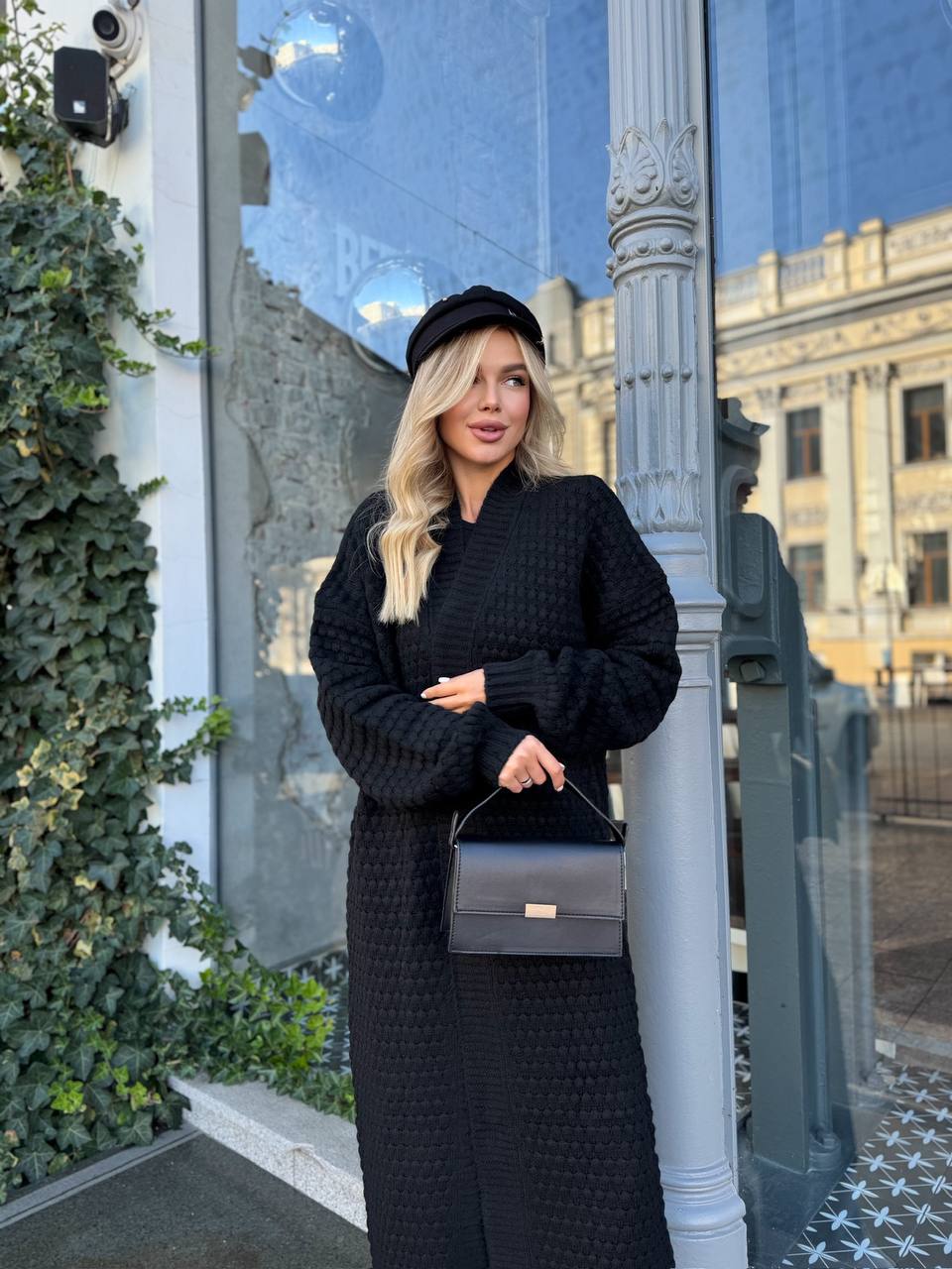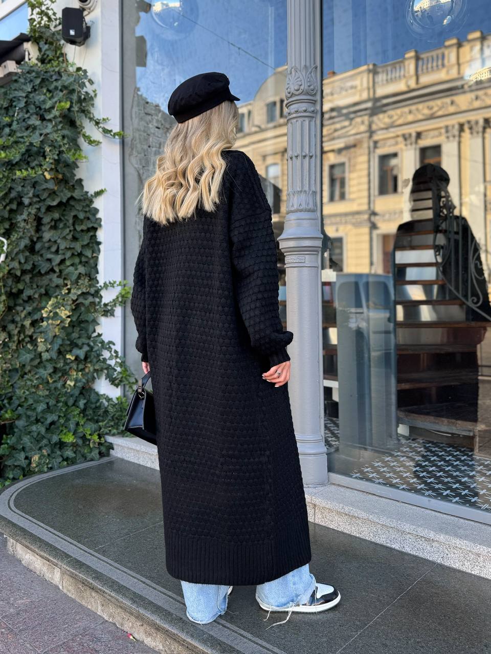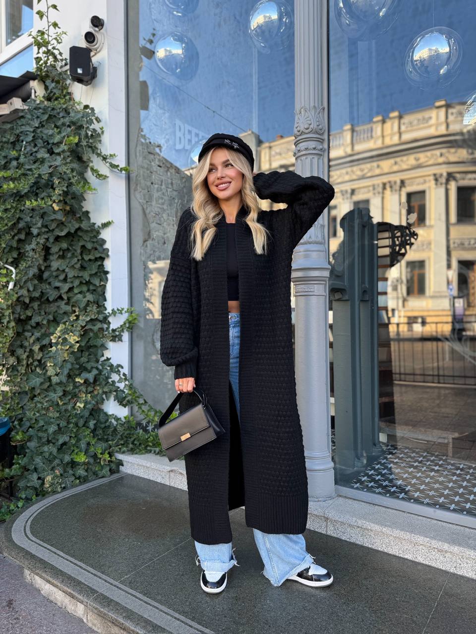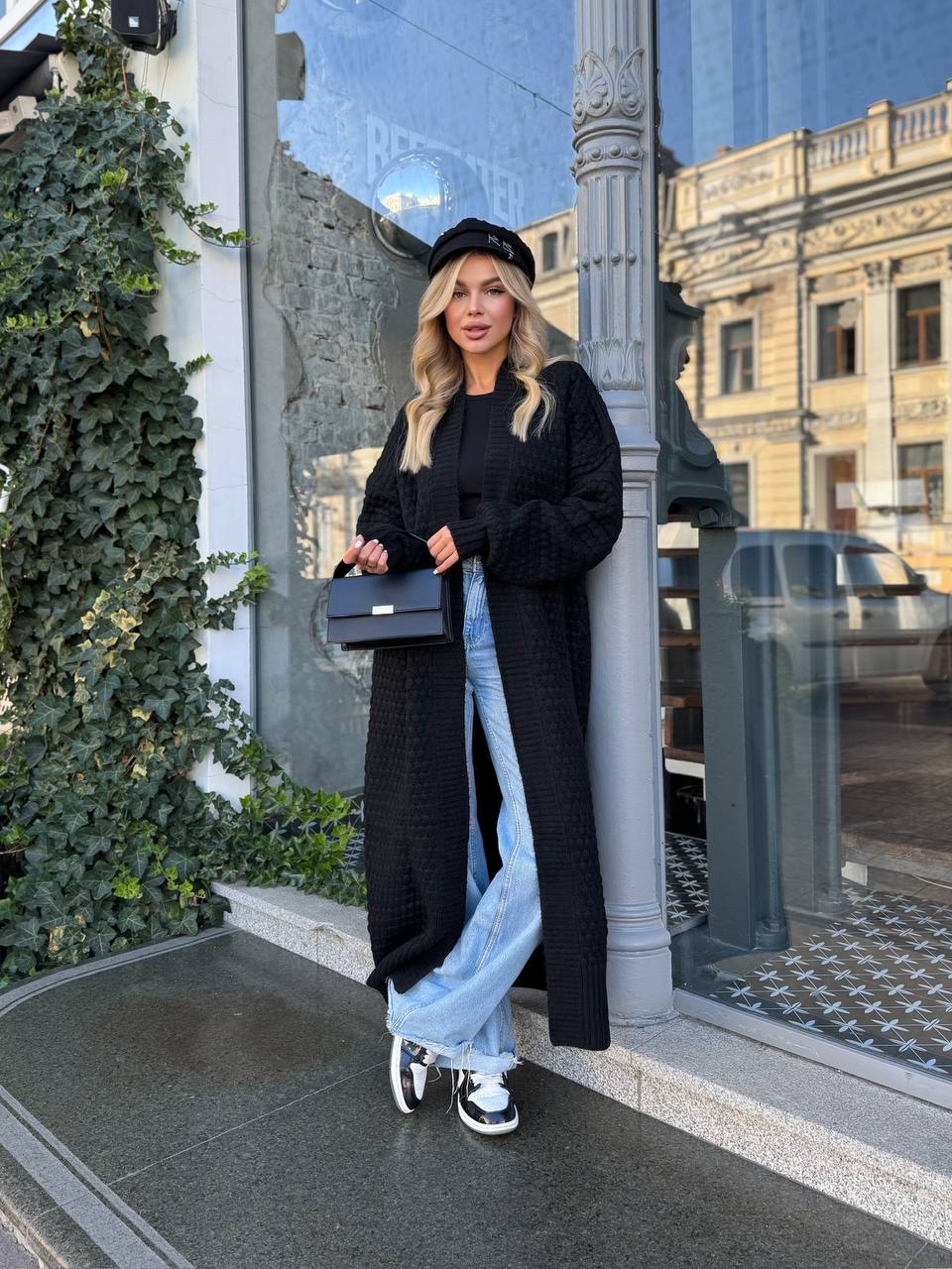 Жіночий Теплий Чорний Кардиган – Подовжений Вільного Крою
