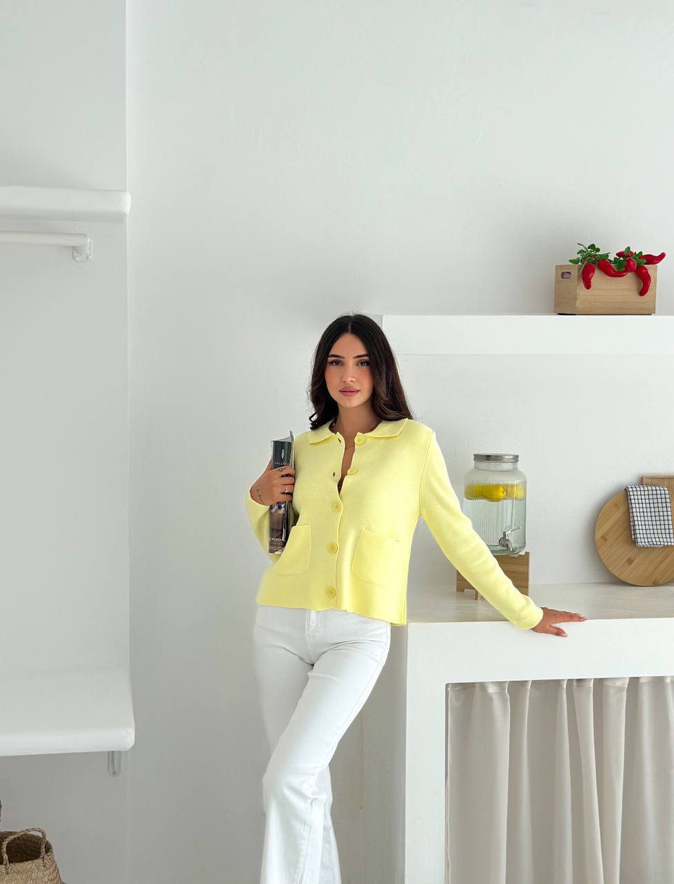 Жіночий Жовтий Кардиган з Коміром та Кишенями – Базовий Класичний у Стилі Old Money