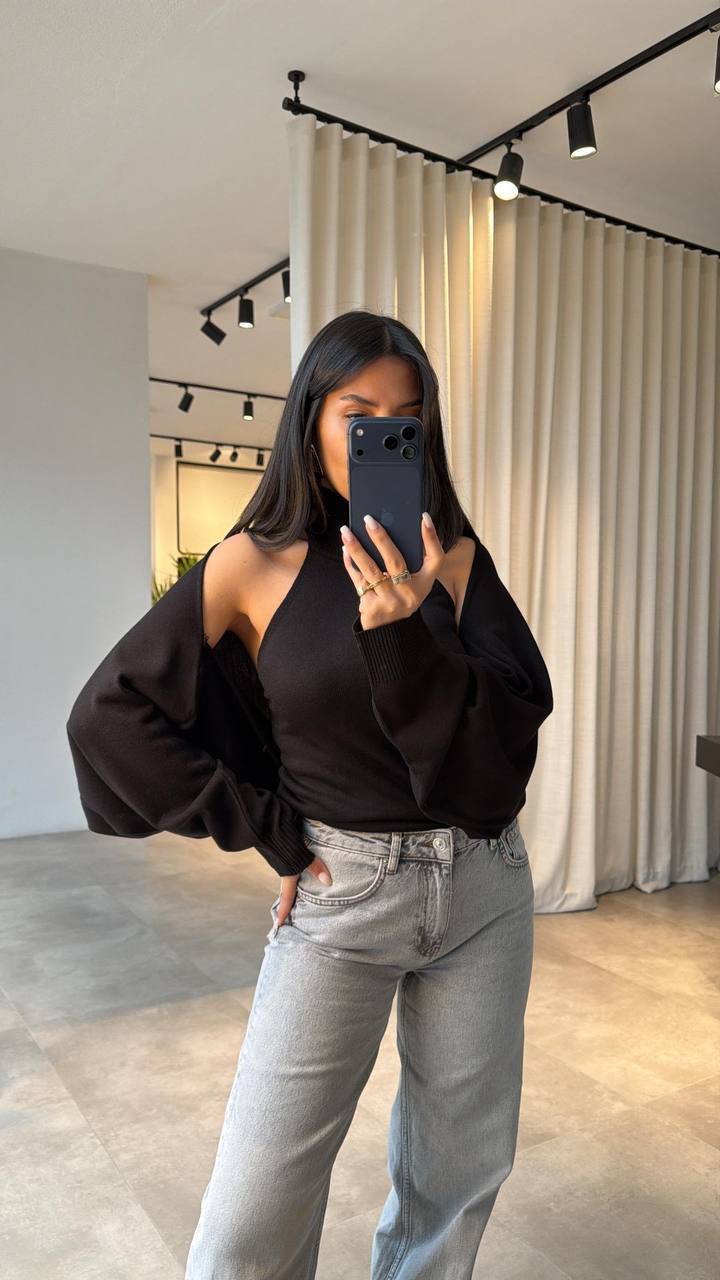 Жіноча Базова Чорна Кофта Болеро + Топ без Рукавів із Відкритою Спиною