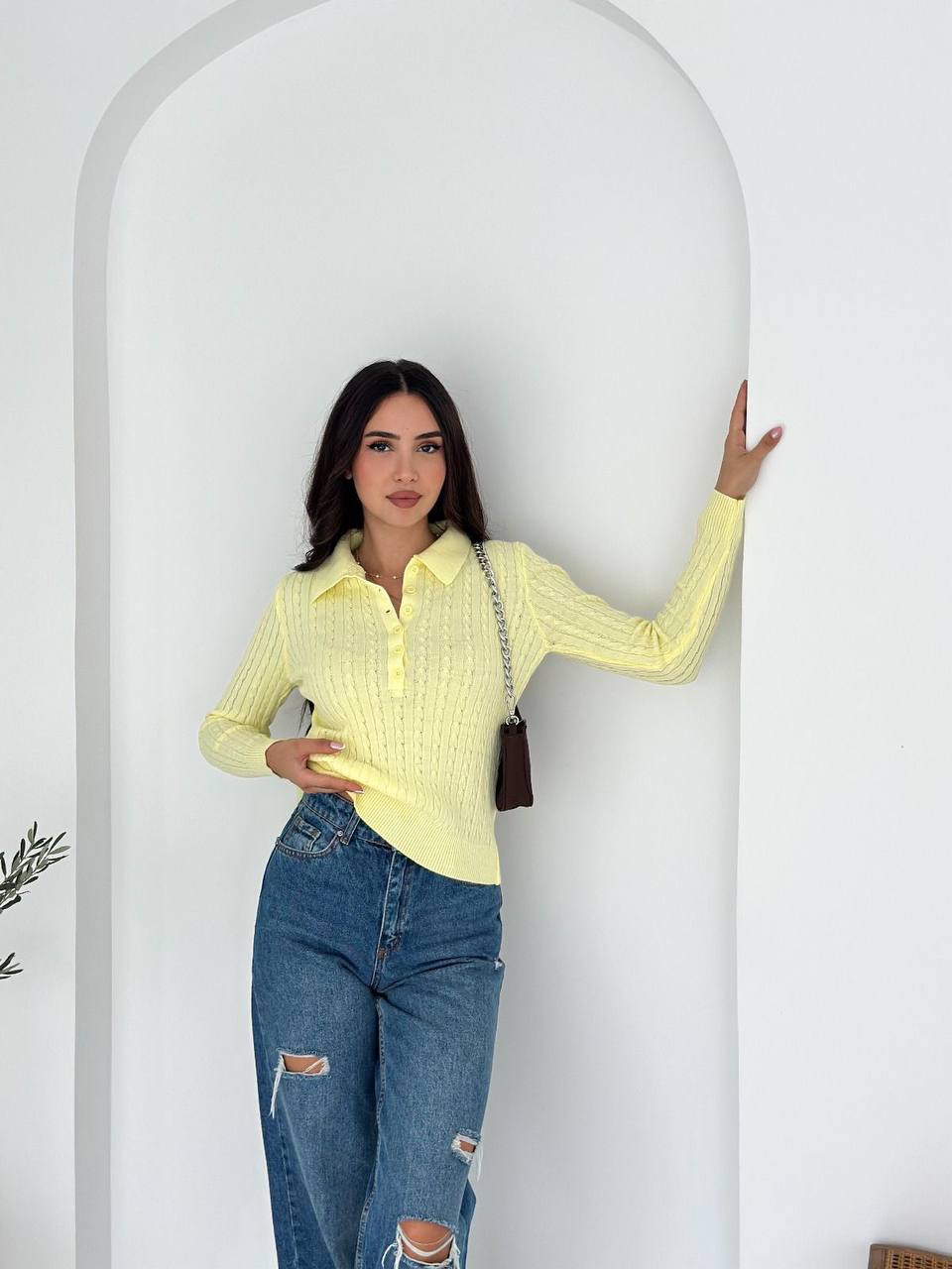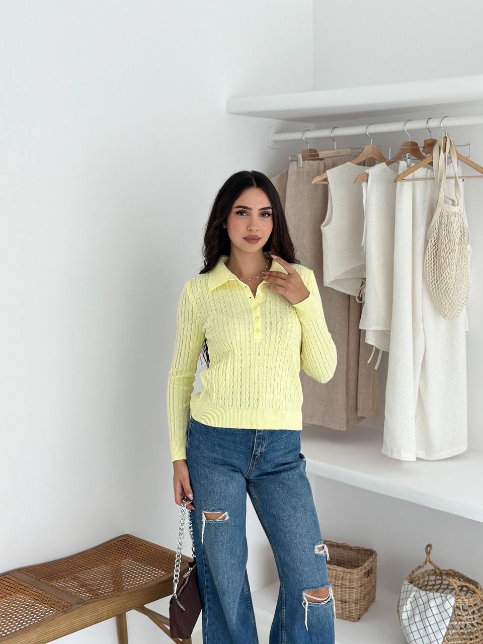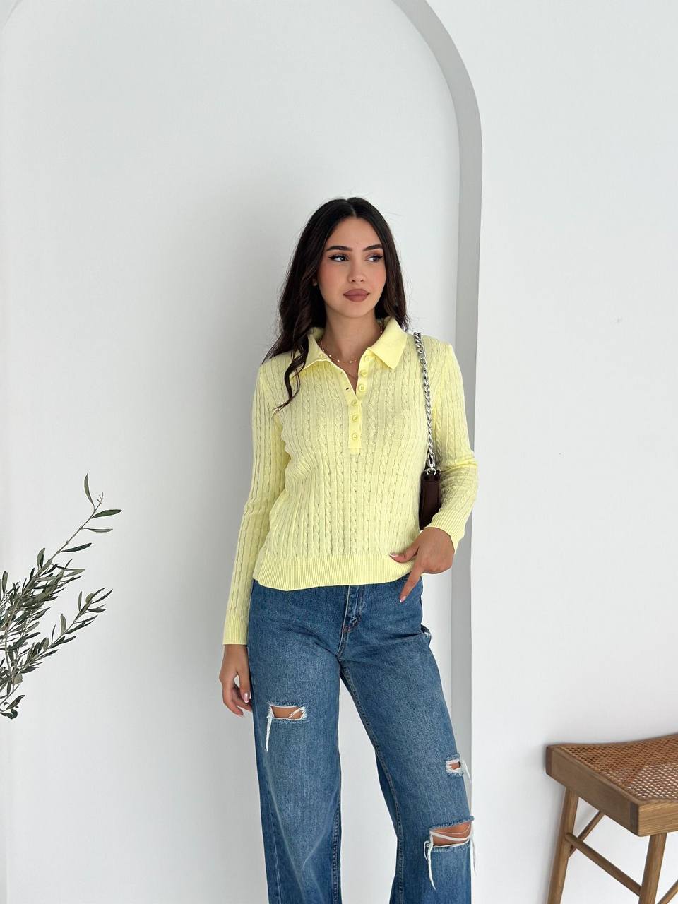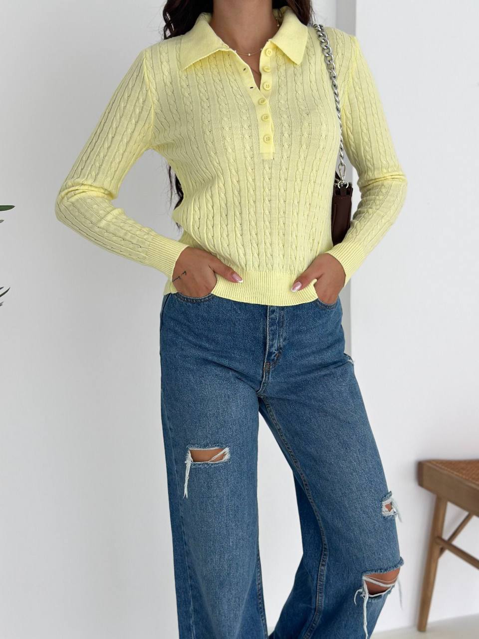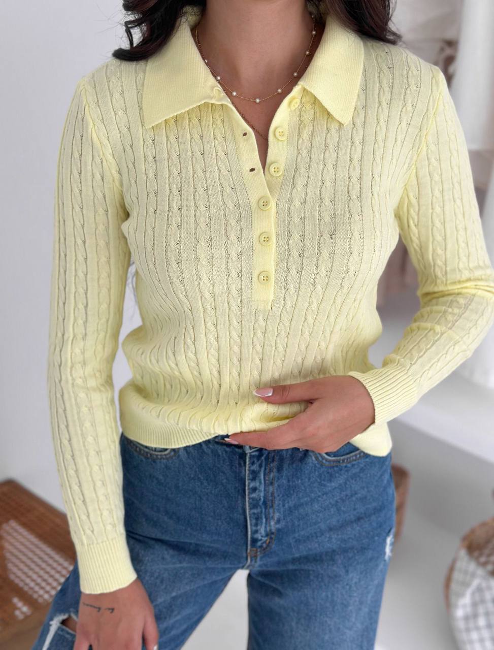 Жіноча Базова Трикотажна Жовта Кофта Поло з Коміром на Ґудзиках