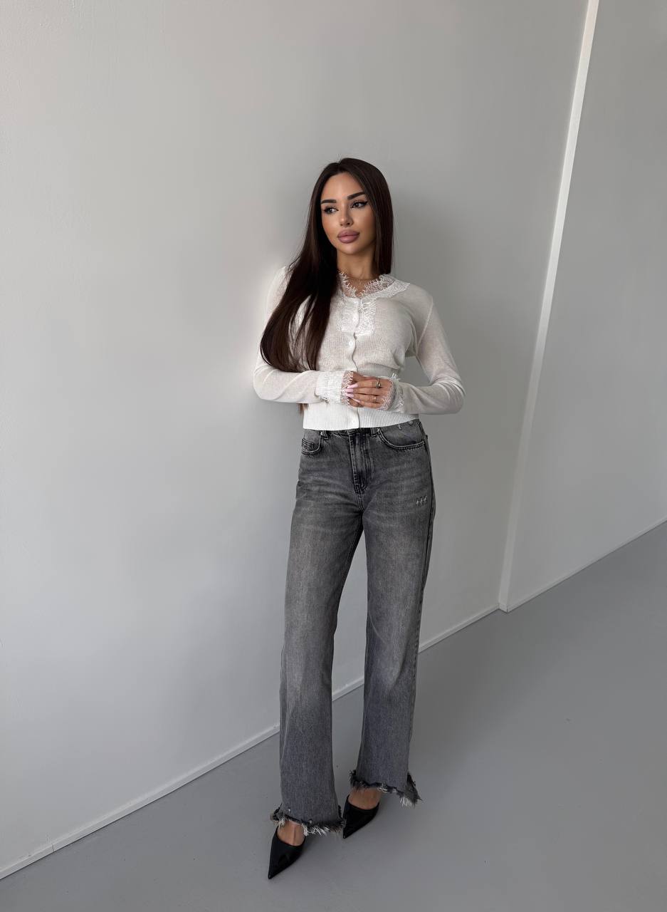 Жіноча Приталена Напівпрозора Біла Кофта на Ґудзиках з Мереживом
