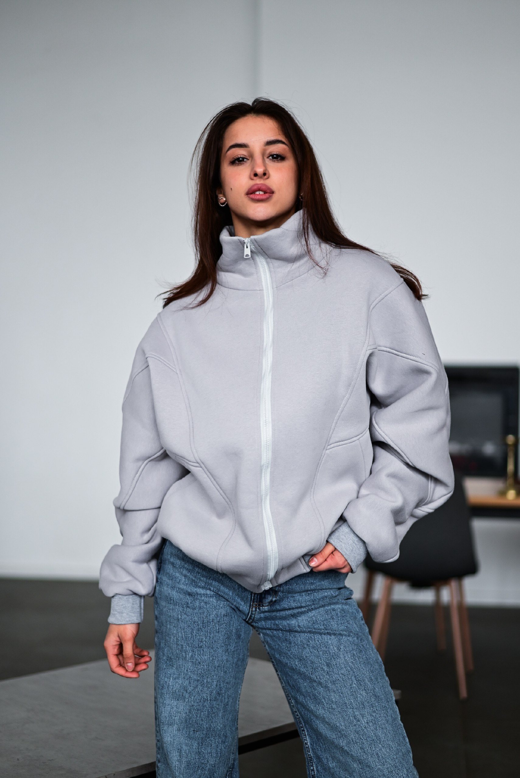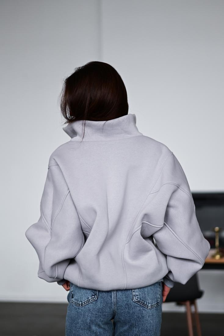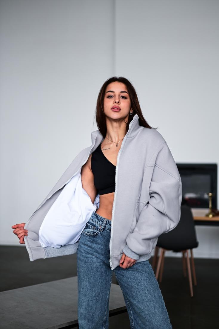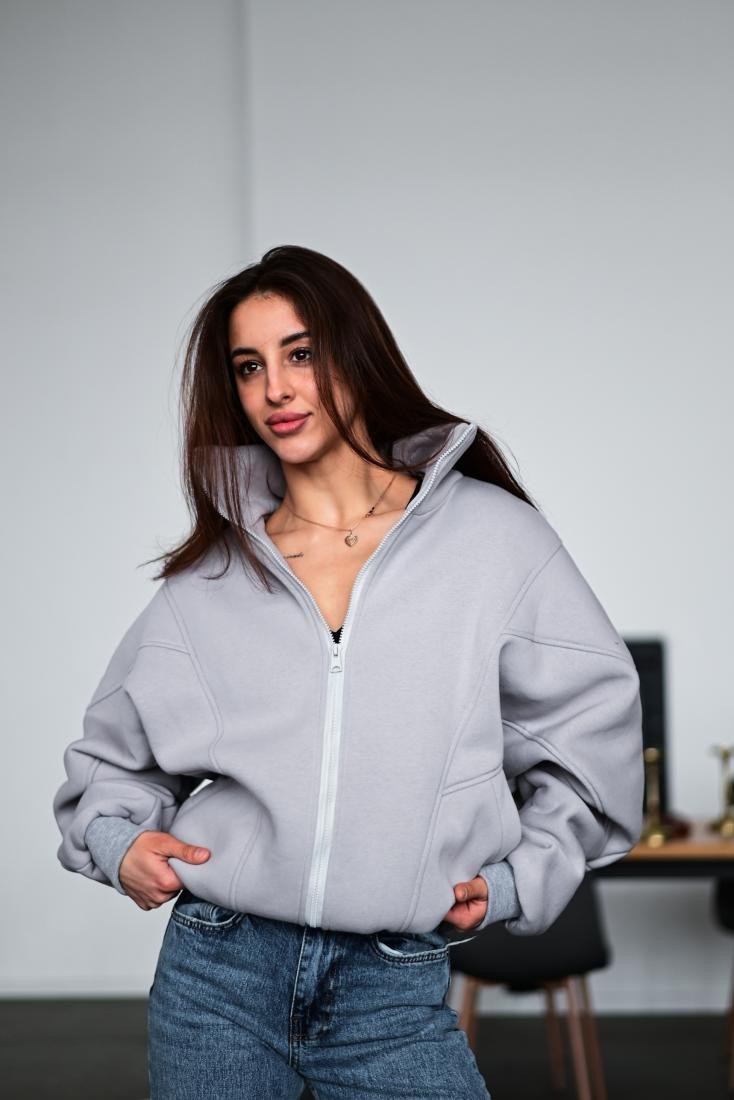 Жіноча Тепла Сіра Кофта на Флісі – Бомбер Оверсайз на Блискавці