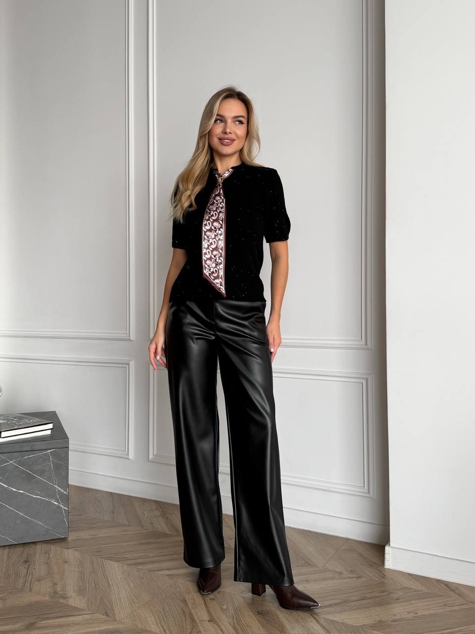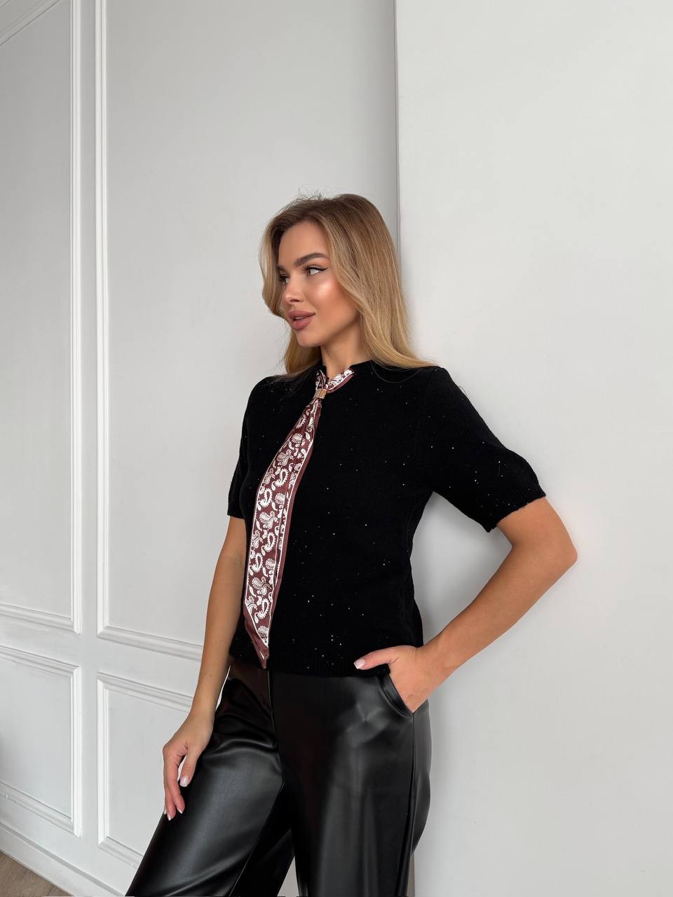 Жіноча Трикотажна Чорна Кофта з Короткими Рукавами і Хусткою-Краваткою
