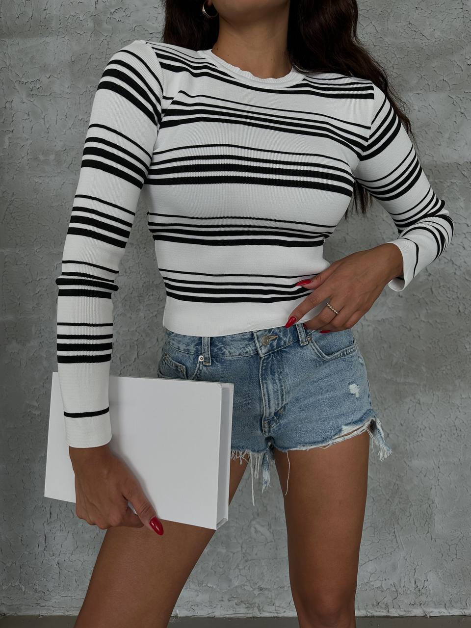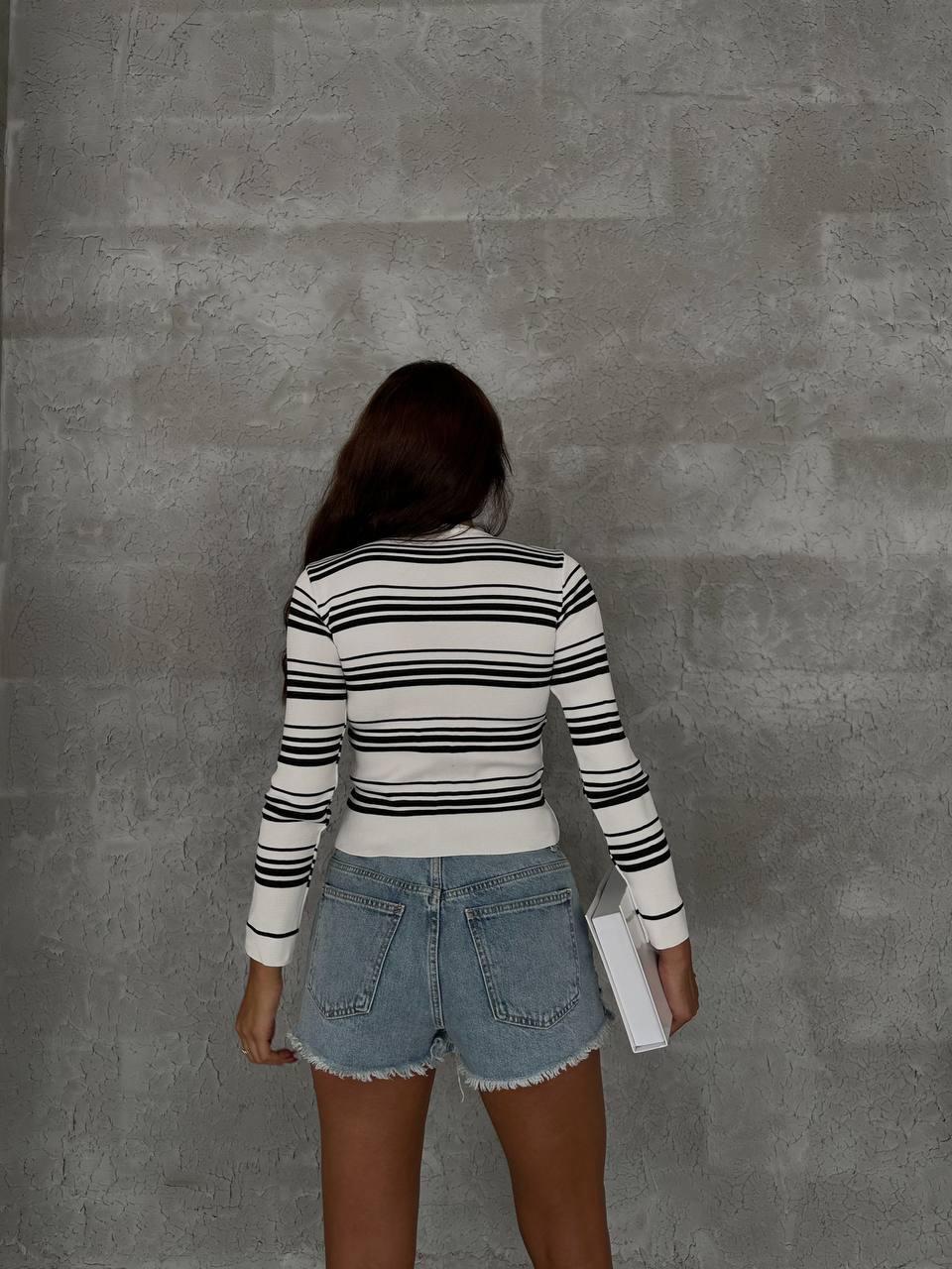 Жіноча Трикотажна Смугаста Біла Кофта – Облягаюча з Круглим Вирізом