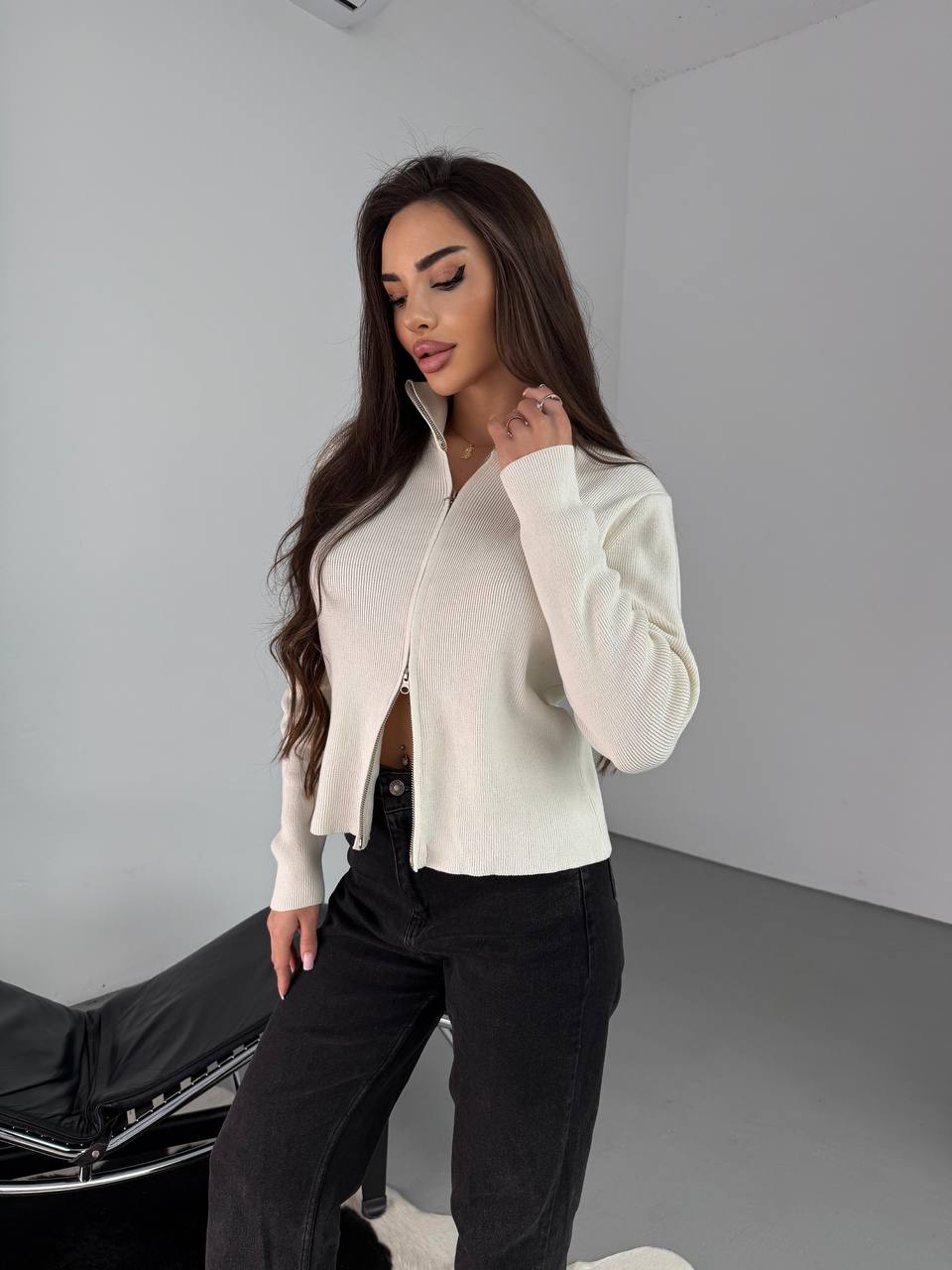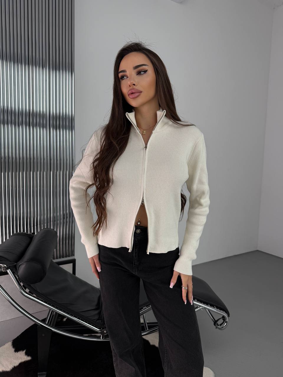 Жіноча Укорочена Трикотажна Молочна Кофта на Блискавці