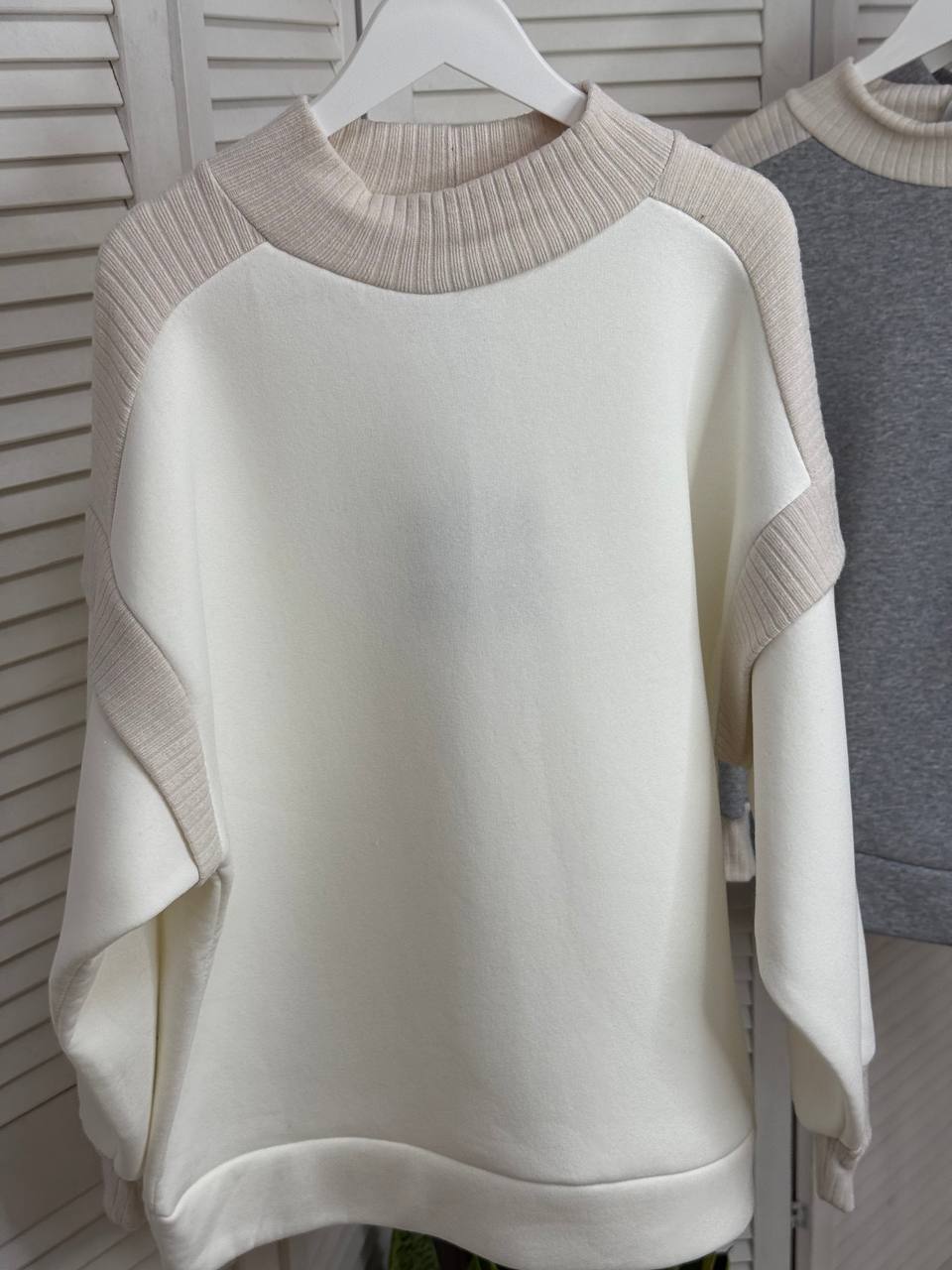 Жіноча Утеплена Біла Кофта на Флісі з Бежевою Окантовкою