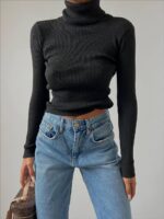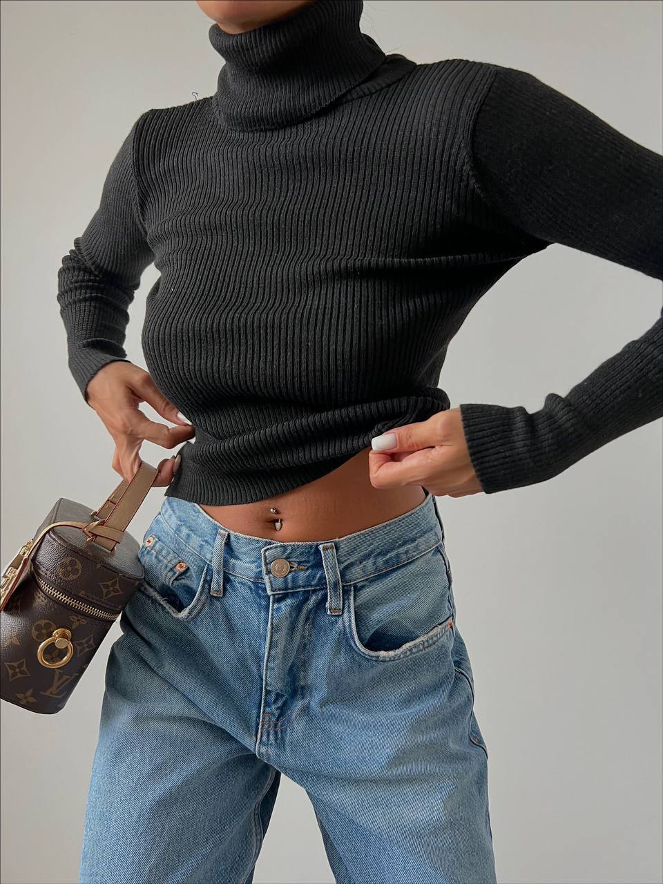 Жіночий Базовий Чорний Гольф Рубчик – Класичний з Подвійним Коміром