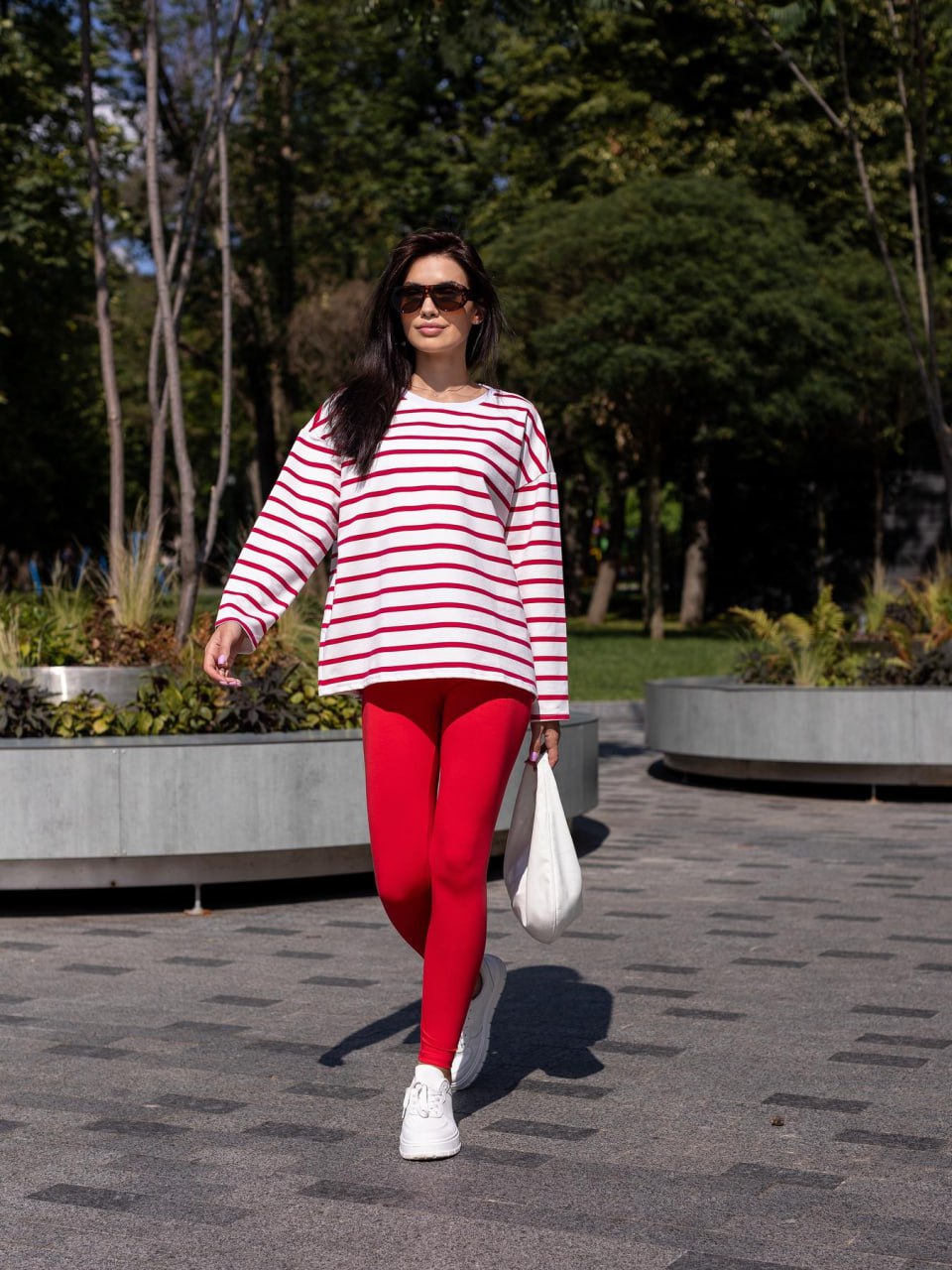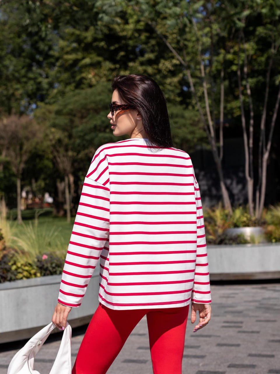Жіночий Білий Лонгслів Оверсайз в Червону Смужку