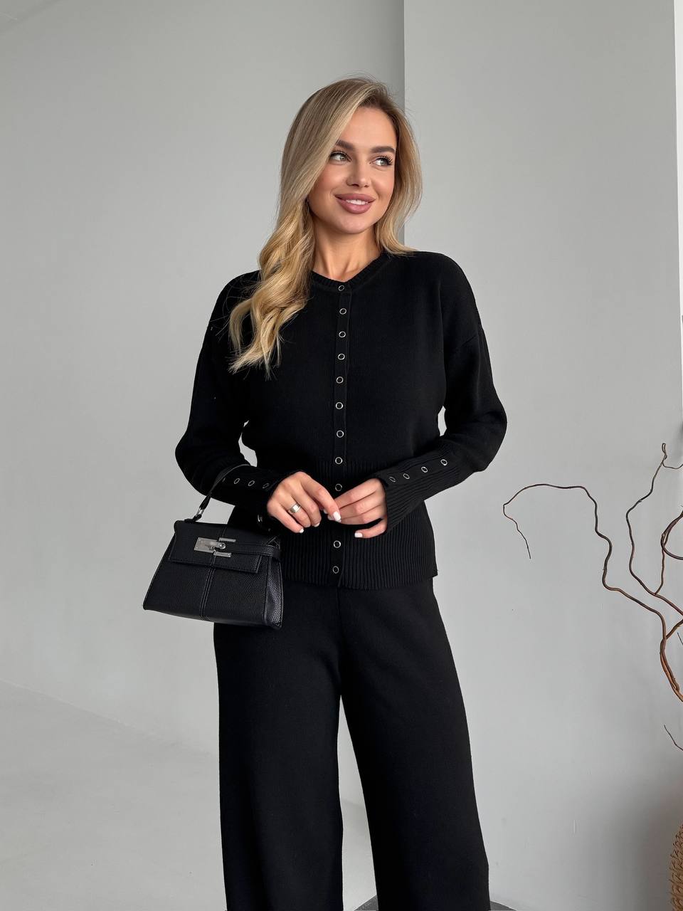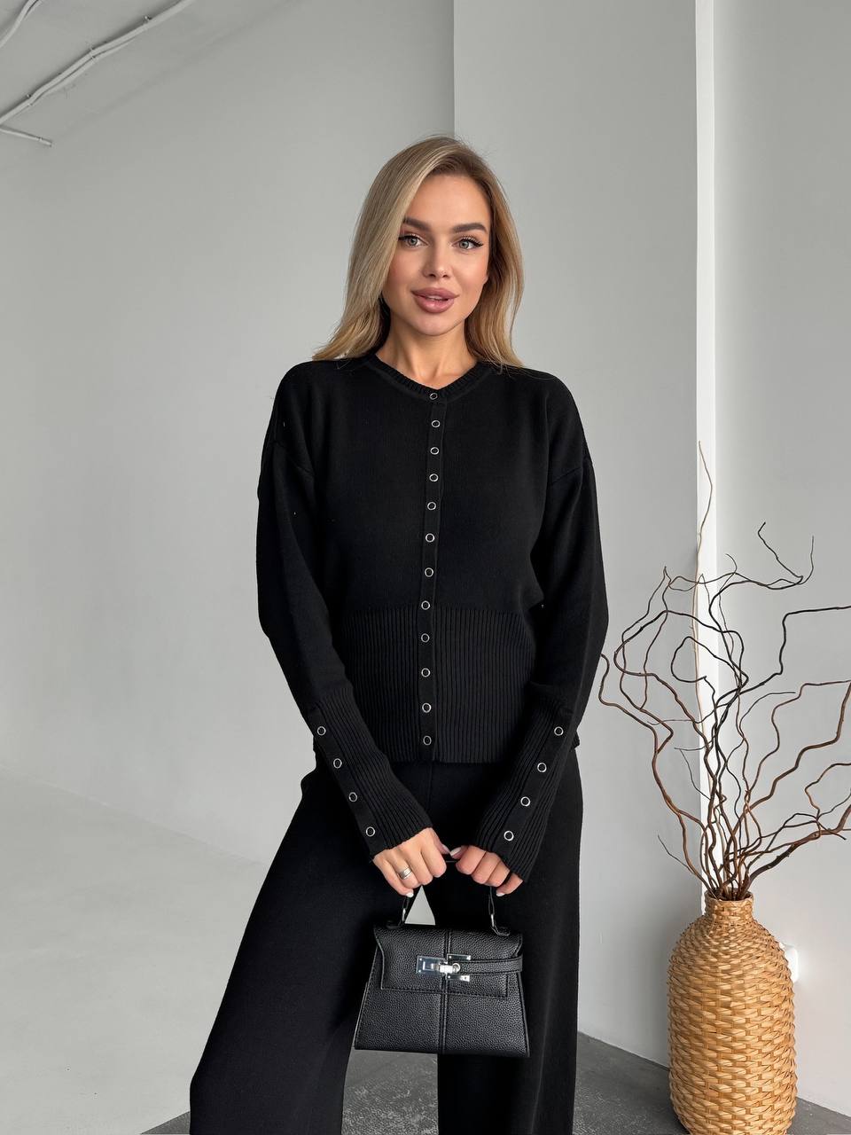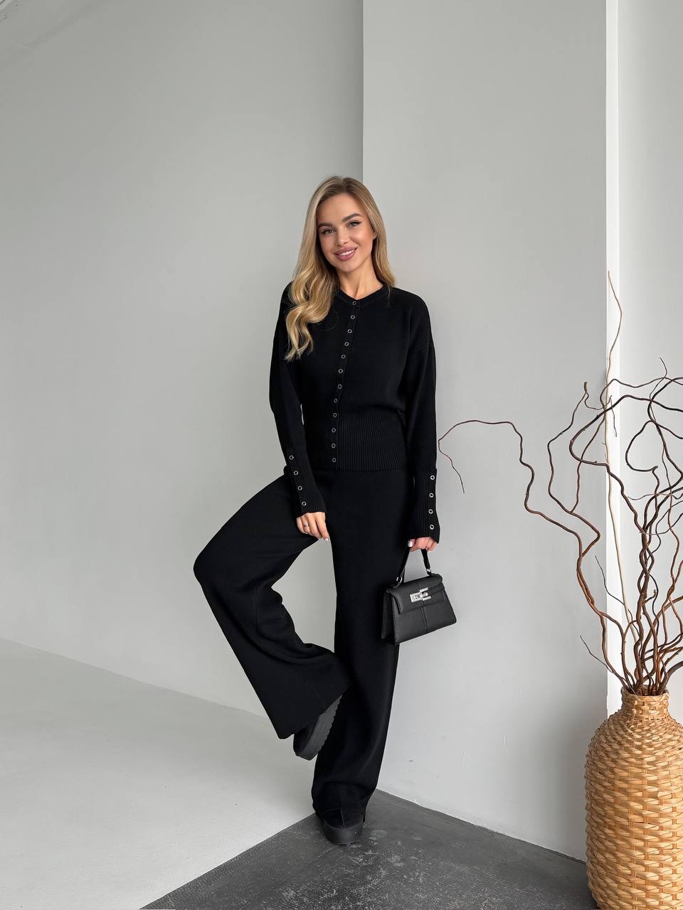 Жіночий Базовий Чорний Костюм Трикотажний – Кофта на Кнопках + Штани Вільного Крою