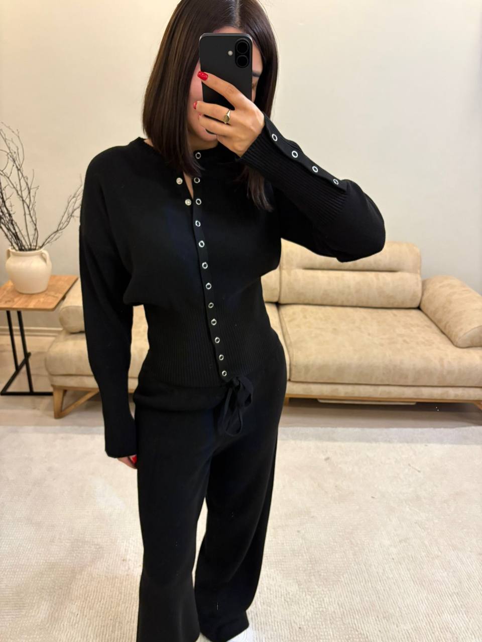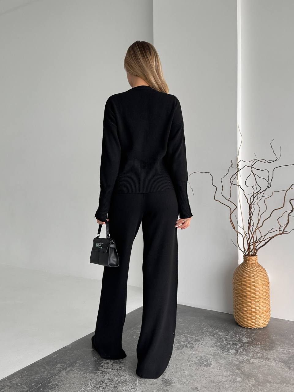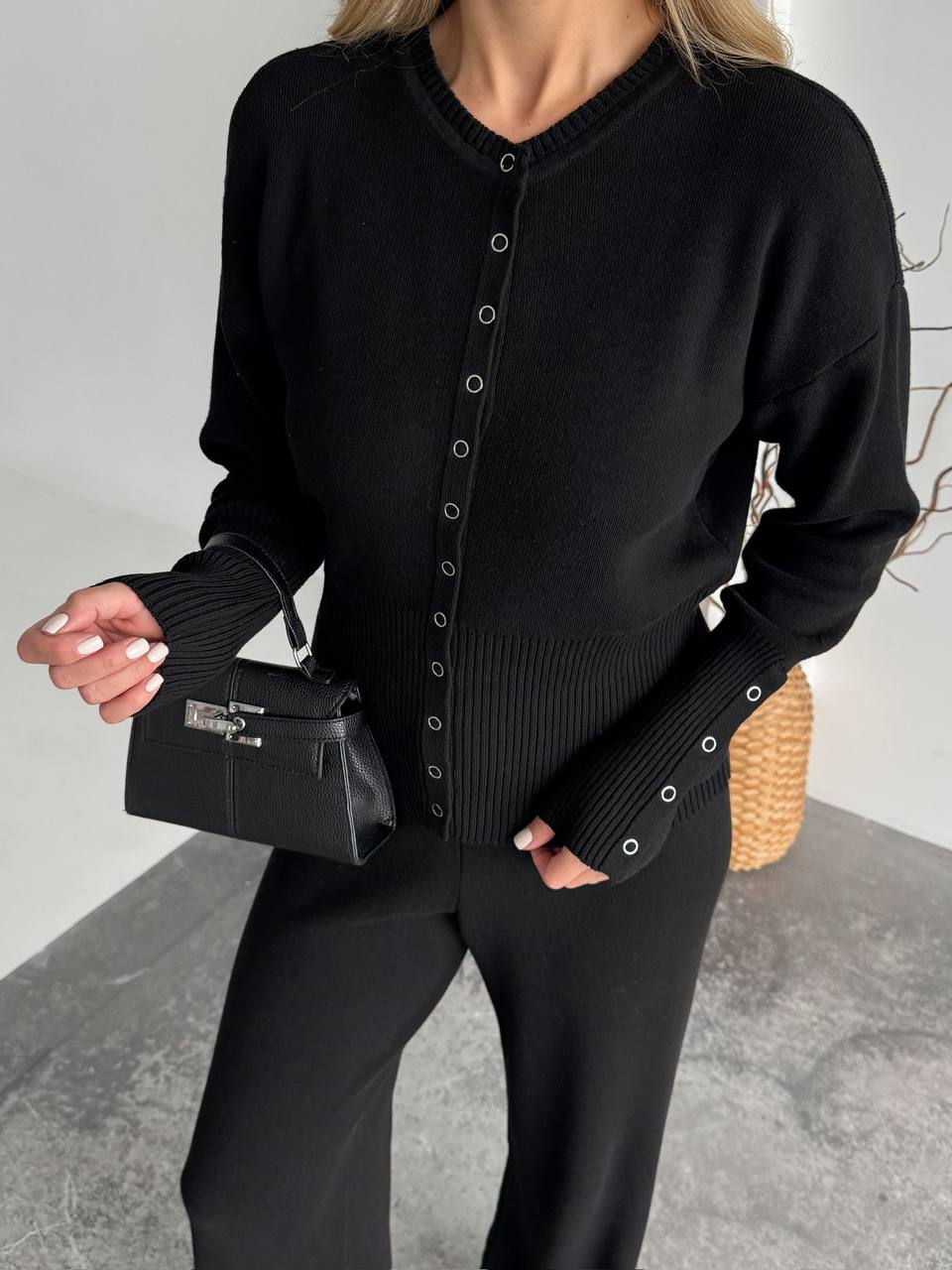 Жіночий Базовий Чорний Костюм Трикотажний – Кофта на Кнопках + Штани Вільного Крою