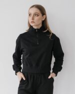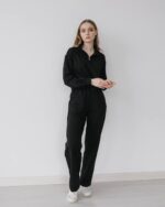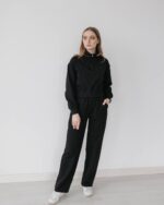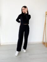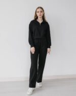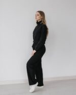 Будьте першим, хто залишив відгук “Жіночий Базовий Трикотажний Чорний Костюм – Світшот із Високим Воротом на Блискавці + Вільні Штани Прямого Крою”“ Скасувати коментар