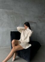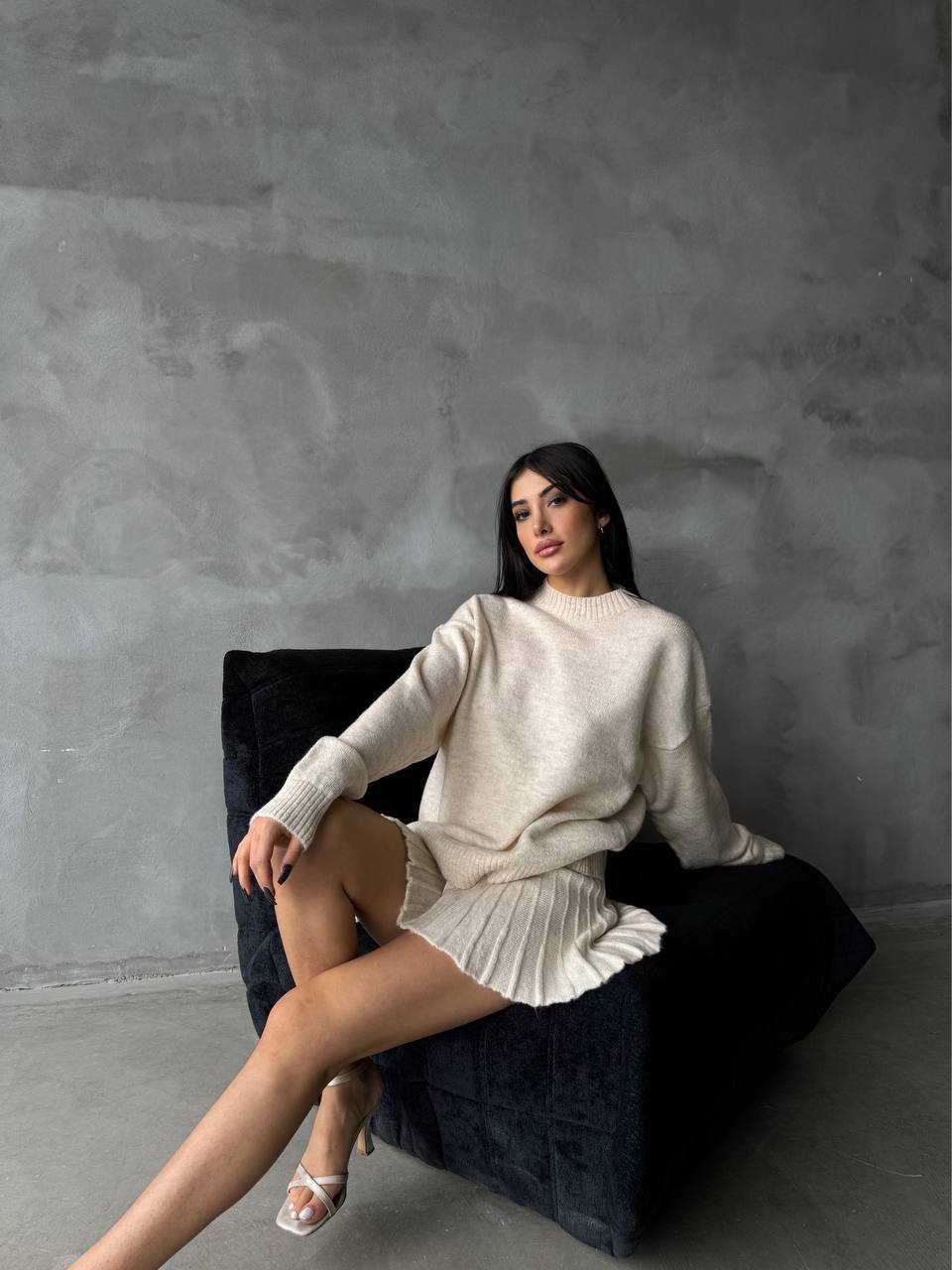 Жіночий Бежевий Костюм Двійка – Светр Вільного Крою + Спідниця Міні