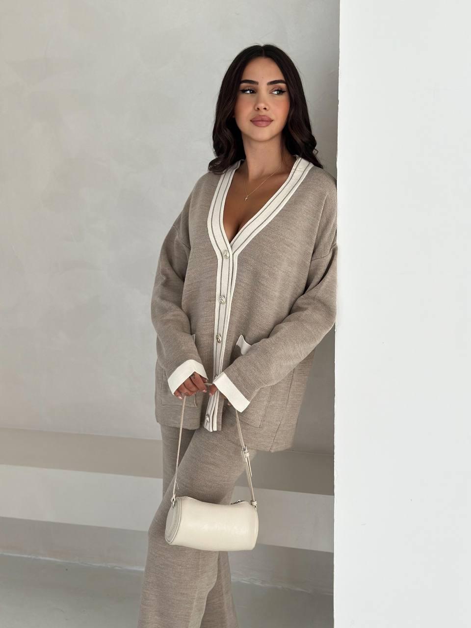Жіночий Бежевий Костюм Вільного Крою з Окантовкою – Комплект Кардиган Штани