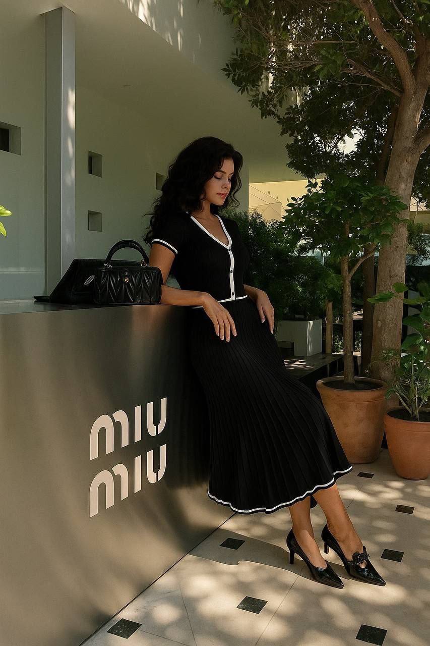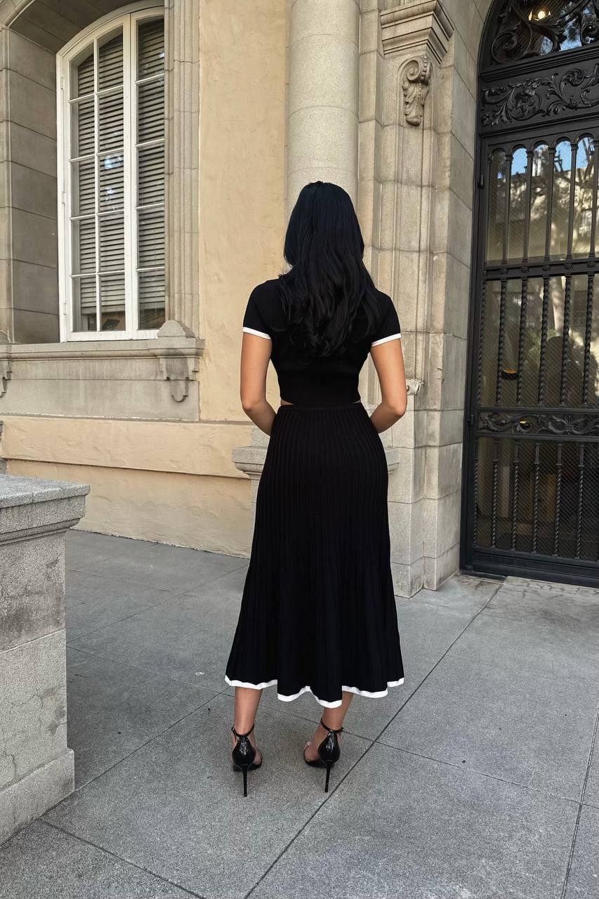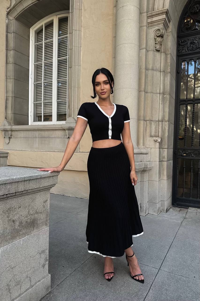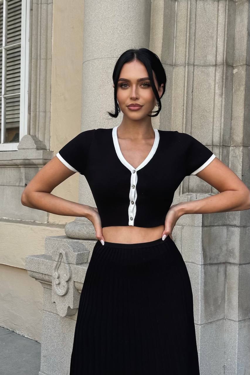 Жіночий Чорний Комплект Двійка з Окантовкою – Топ на Ґудзиках + Довга Спідниця