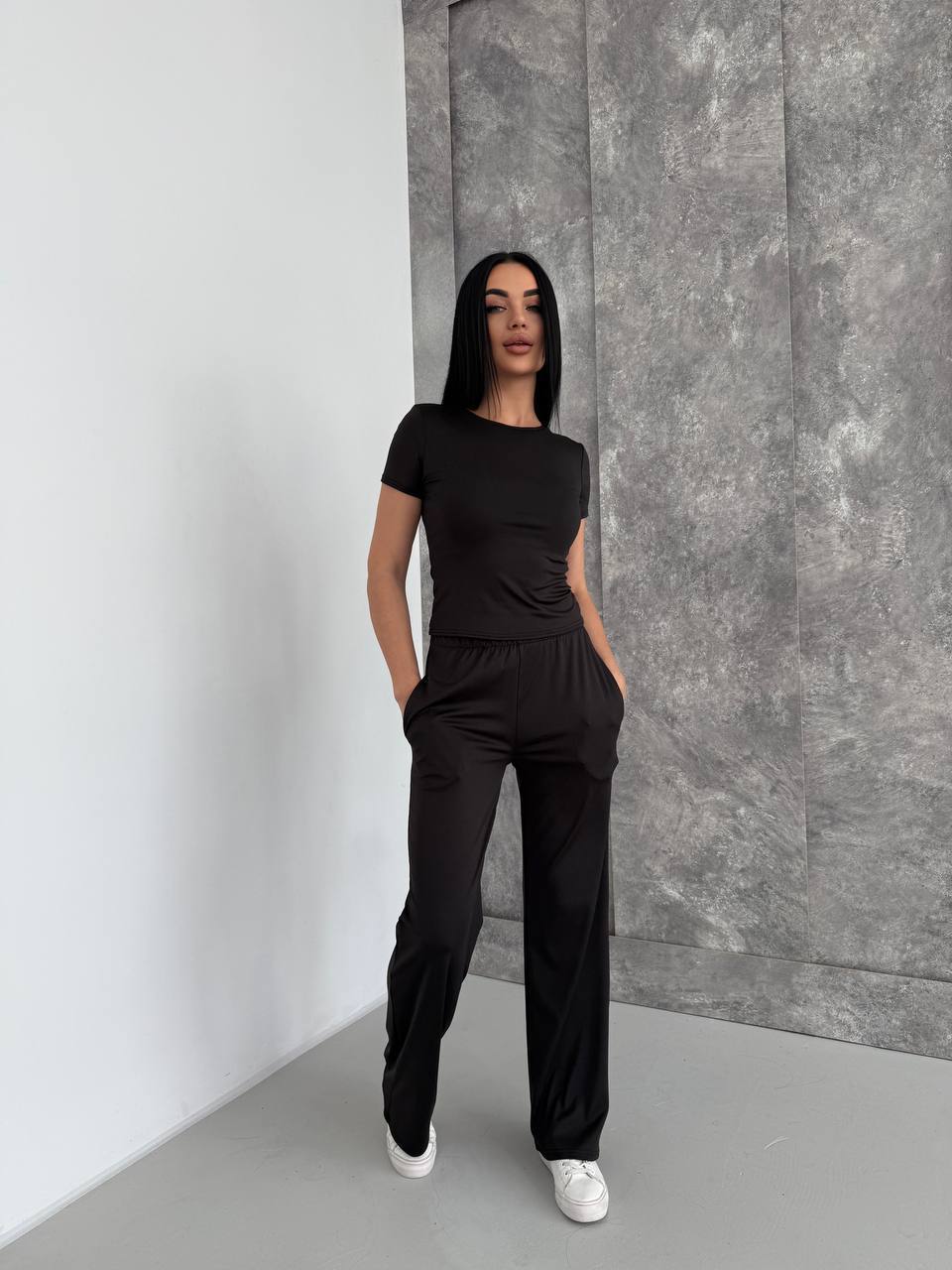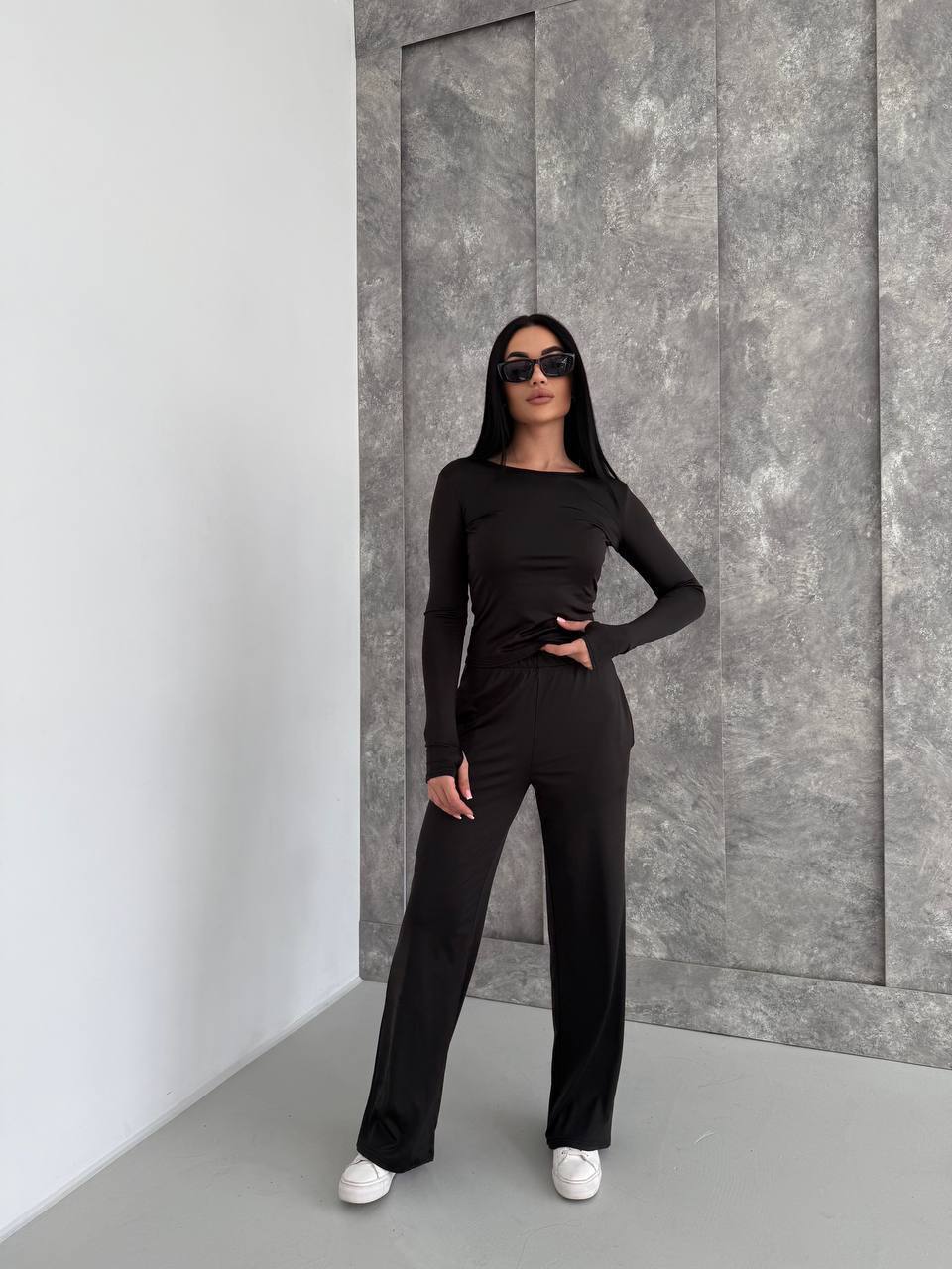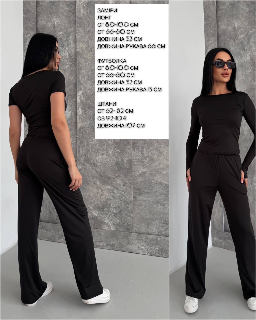 Жіночий Чорний Костюм Комплект Трійка – Футболка + Лонгслів + Штани