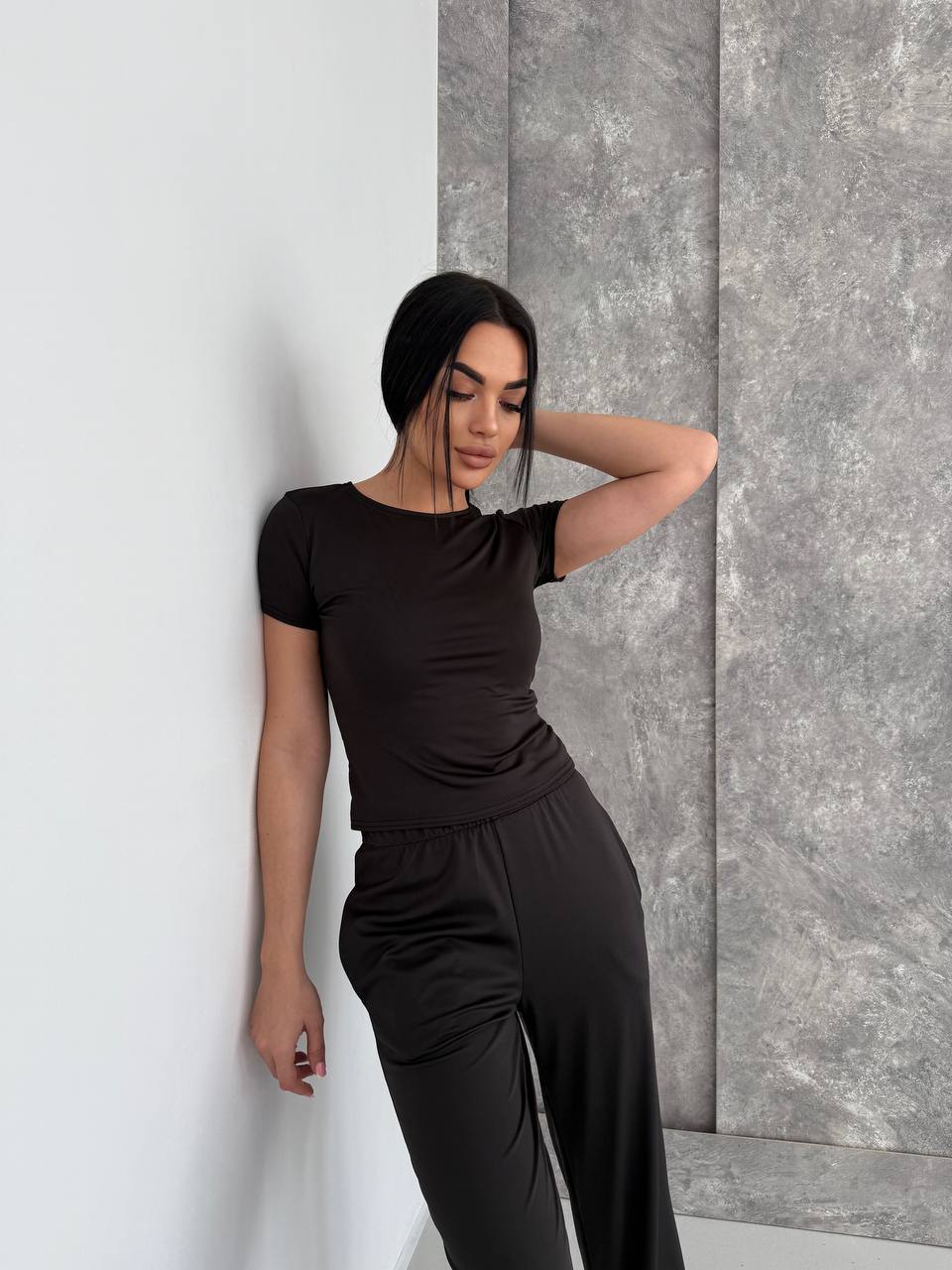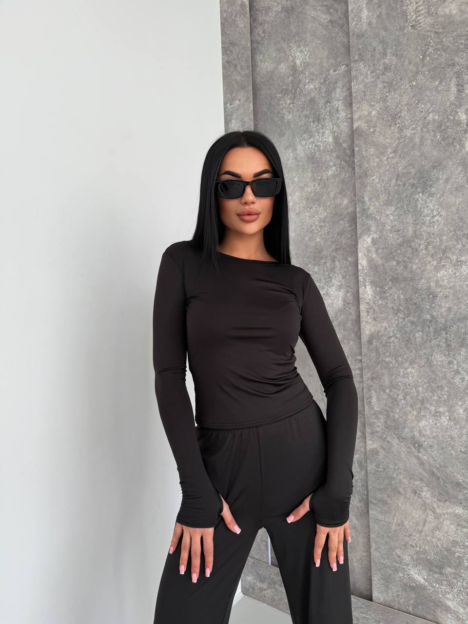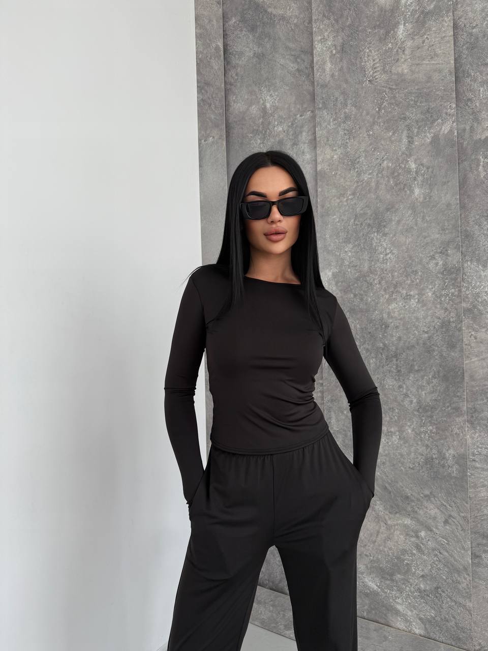 Жіночий Чорний Костюм Комплект Трійка – Футболка + Лонгслів + Штани